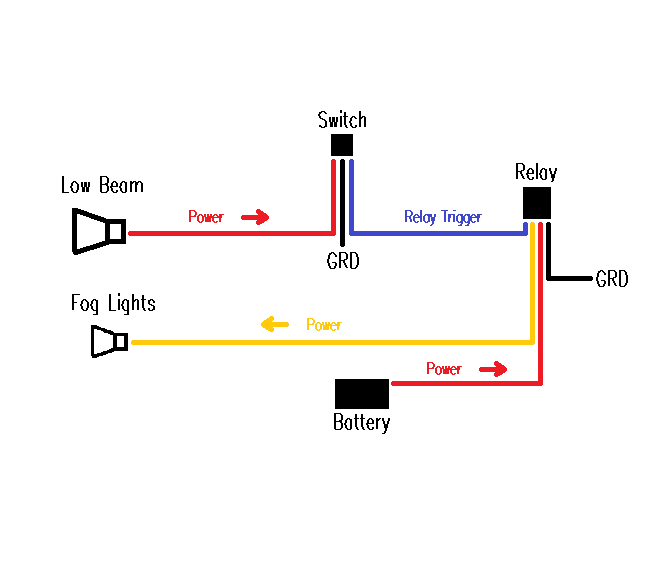 Edit: I should clarify that the switch in the diagram is a dedicated switch just for the fog lights, not the headlight switch.