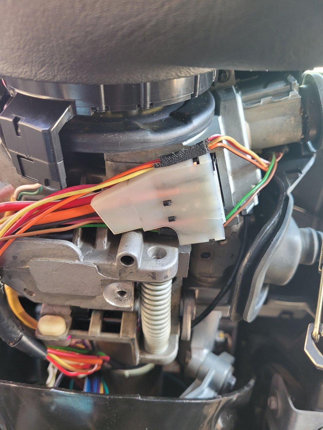 located under steering wheel, below key