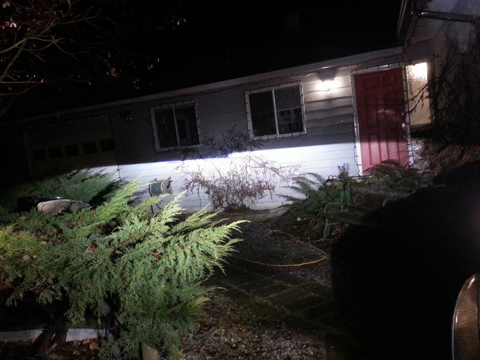 This picture is less than a minute after putting power to it for the first time. It really doesn't do it justice!! Right in the middle it has the blue flare that I've read about. As a reference, the porch light is a 60W soft white fluorescent bulb.