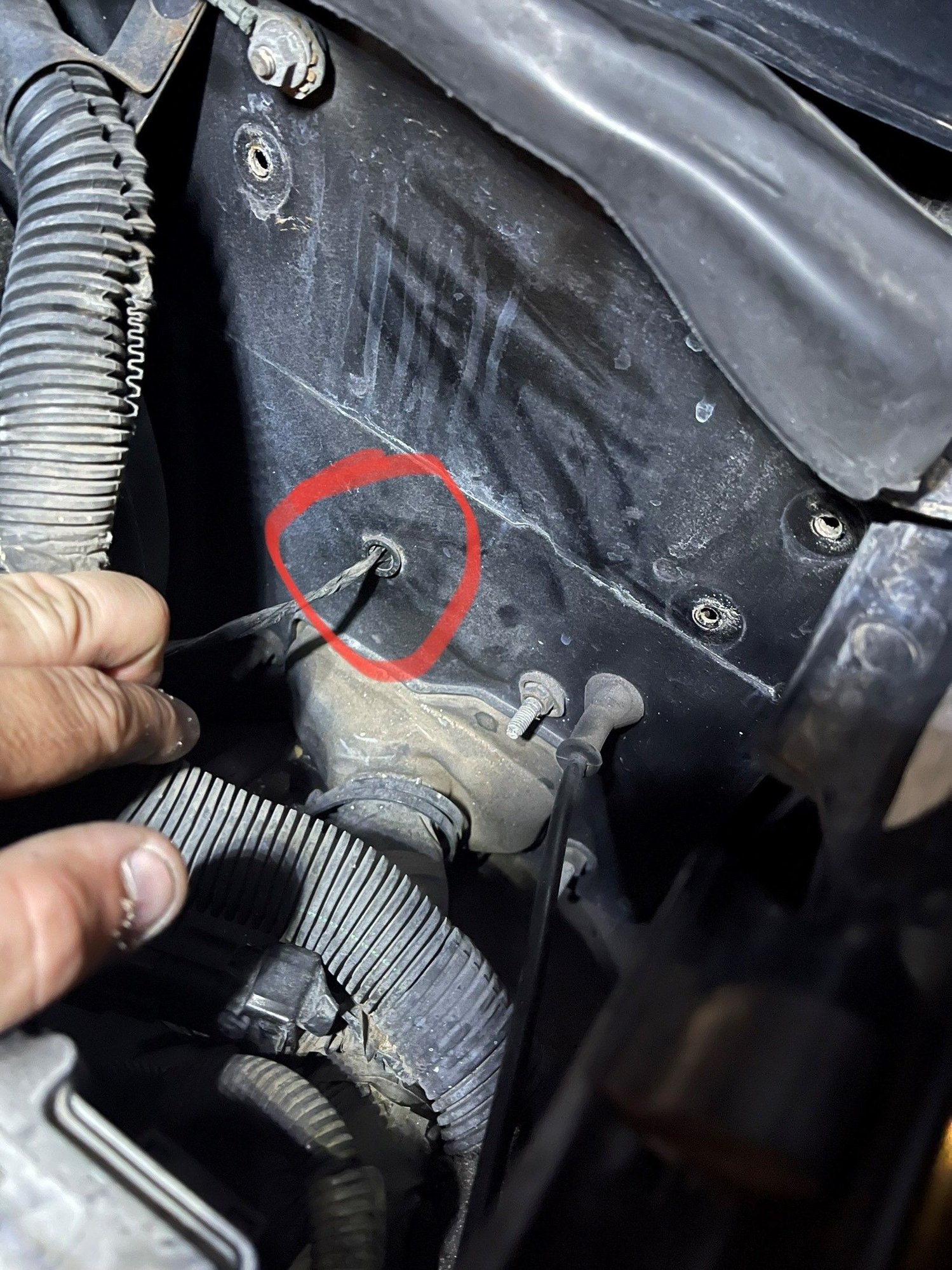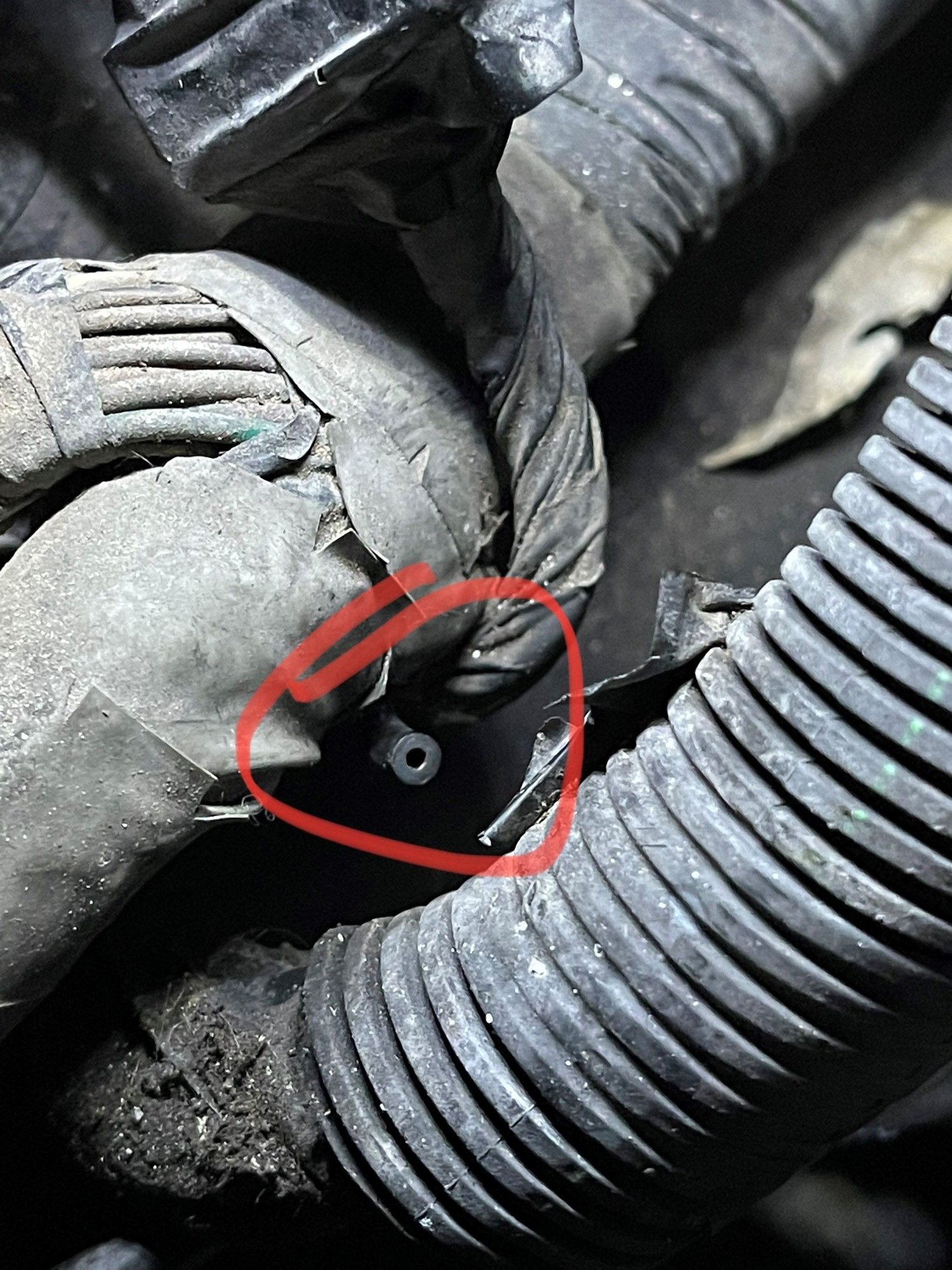 Ill attach the photos Close up view of pottential HVAC vacuum line Wide view of pottential HVAC vacuum line Grommet for mystery wire, or possibly vacuum line