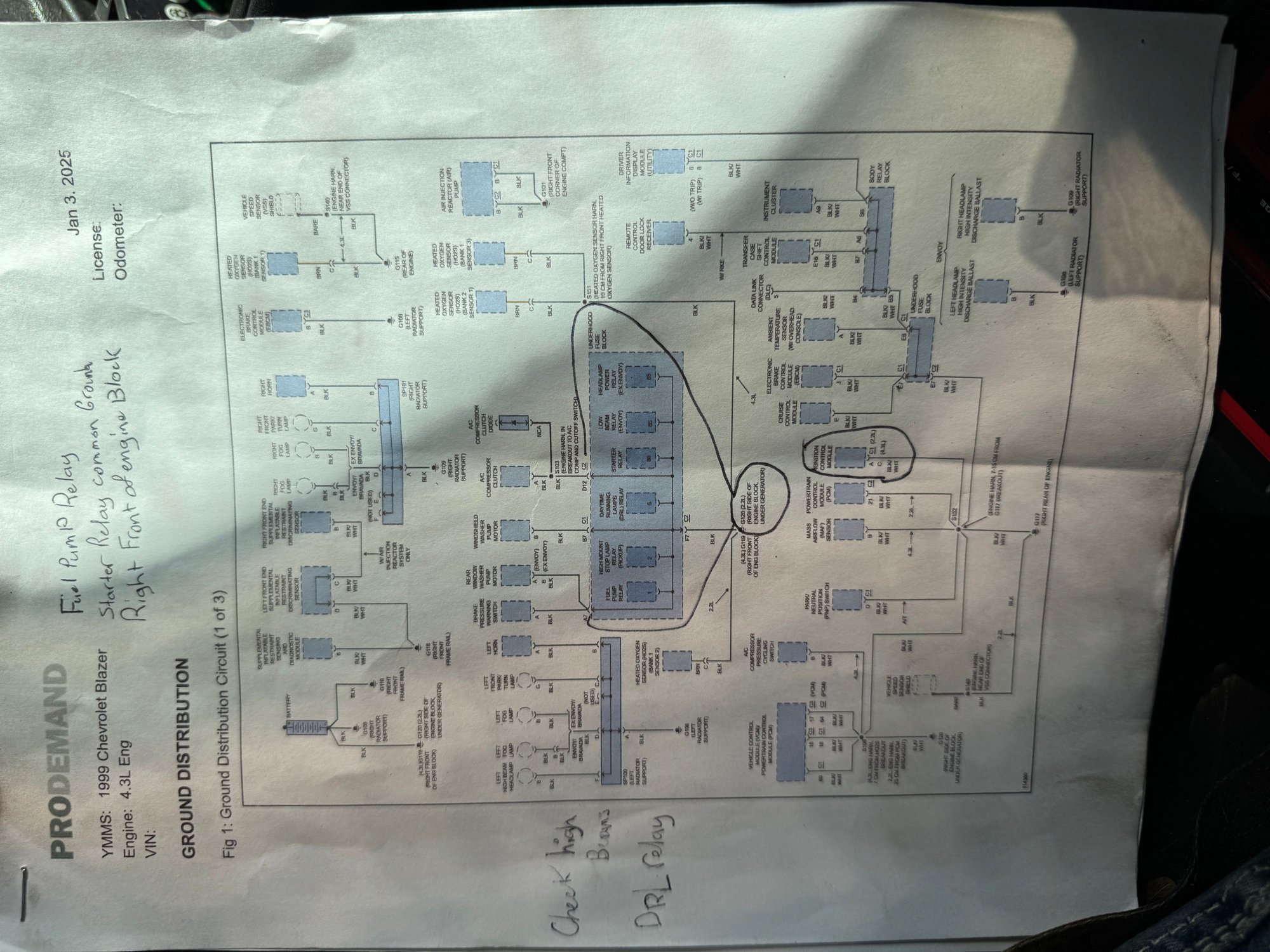 ECM1 has 6V on it and right next to it in the UHFB is ENG1 with 12V. They are both fed by the same circuit and the wiring diagram implies that they are connected under the fuse block which is why I expected you to find corrosion in that location:
