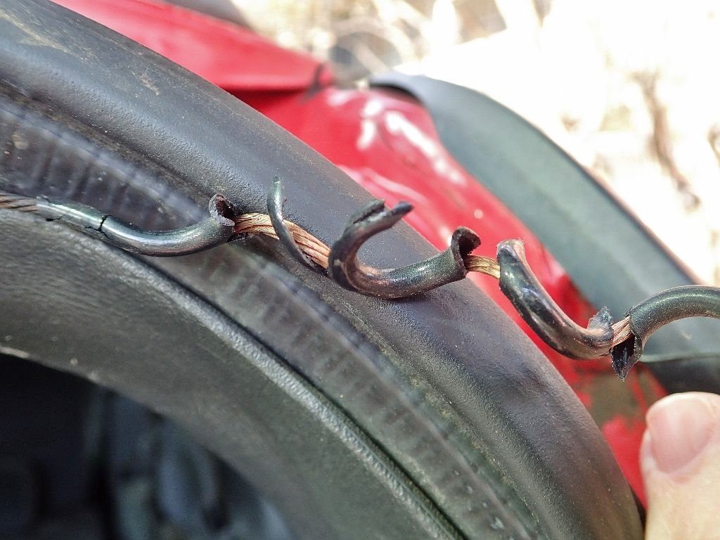 The new wires are now ready. They're installed by clipping one end into the plug under the headliner, and the other end to the stud on the window grid. .