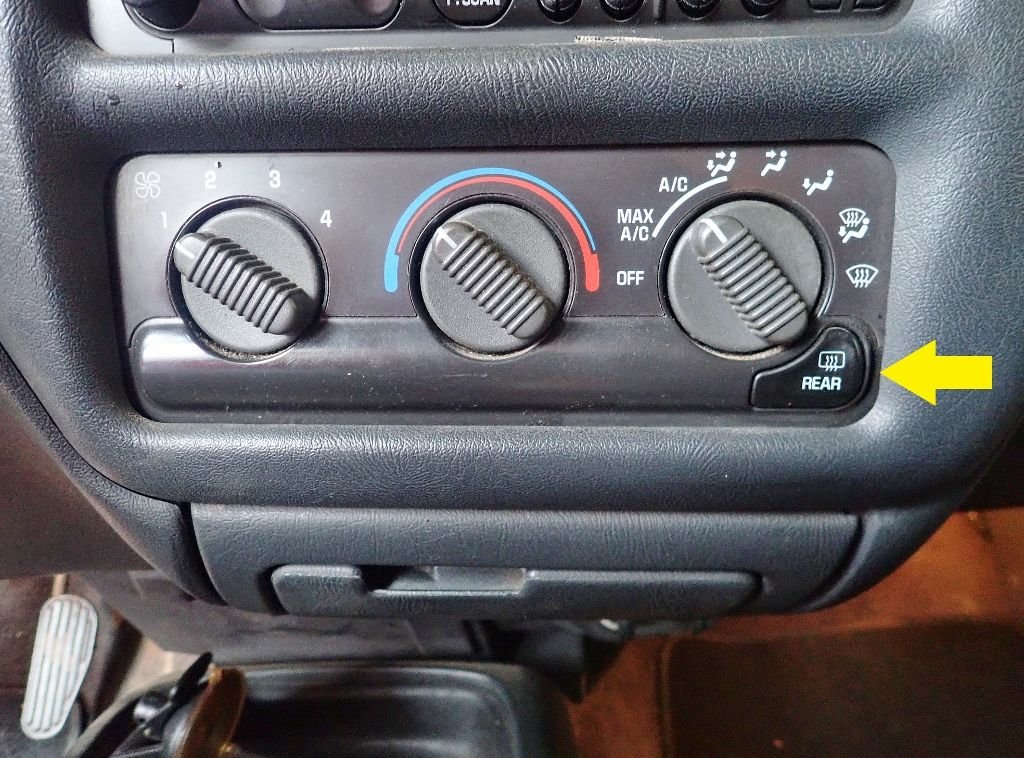 The window has a wire grid embedded in the glass, and wires running to both sides to make them heat up to eliminate fog and ice.
