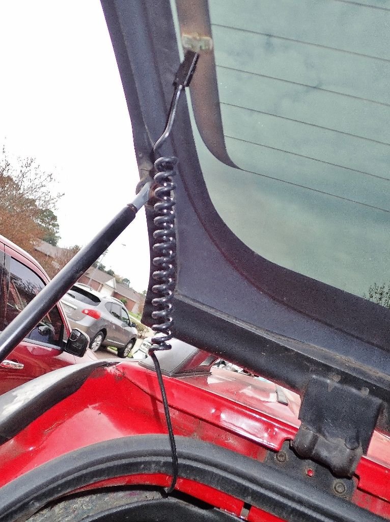 Replacing the electrical cords to the rear window defroster. Winter is coming.