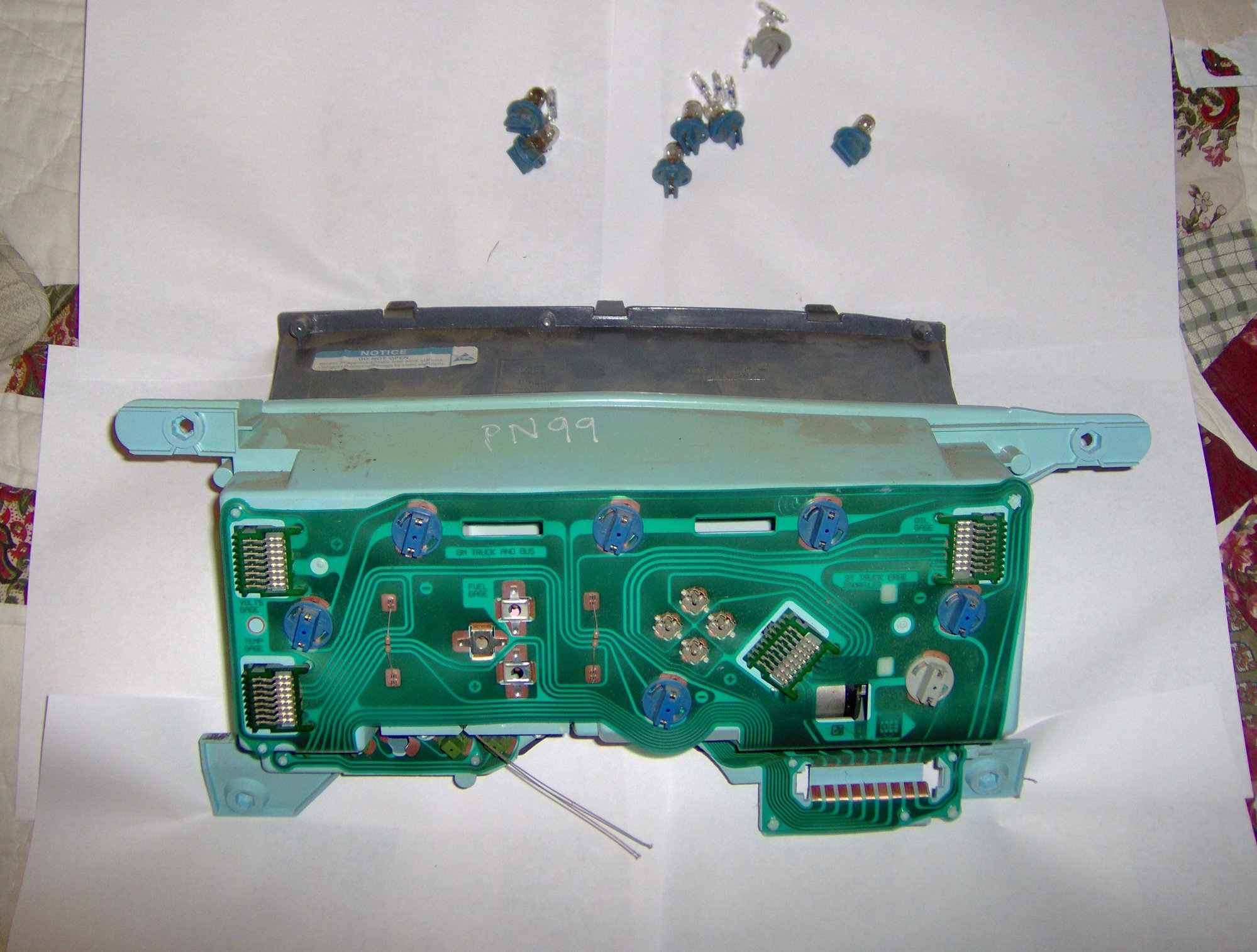 So I had to dive into my instrument cluster to change out the background lights. I did some YouTube research beforehand. I have successfully removed the instrument cluster and waiting for the rest of my bulbs to get delivered to the part store tomorrow. I will complete the job tomorrow. If there is an easier way to remove and install the climate control side of the dash it would be super helpful.