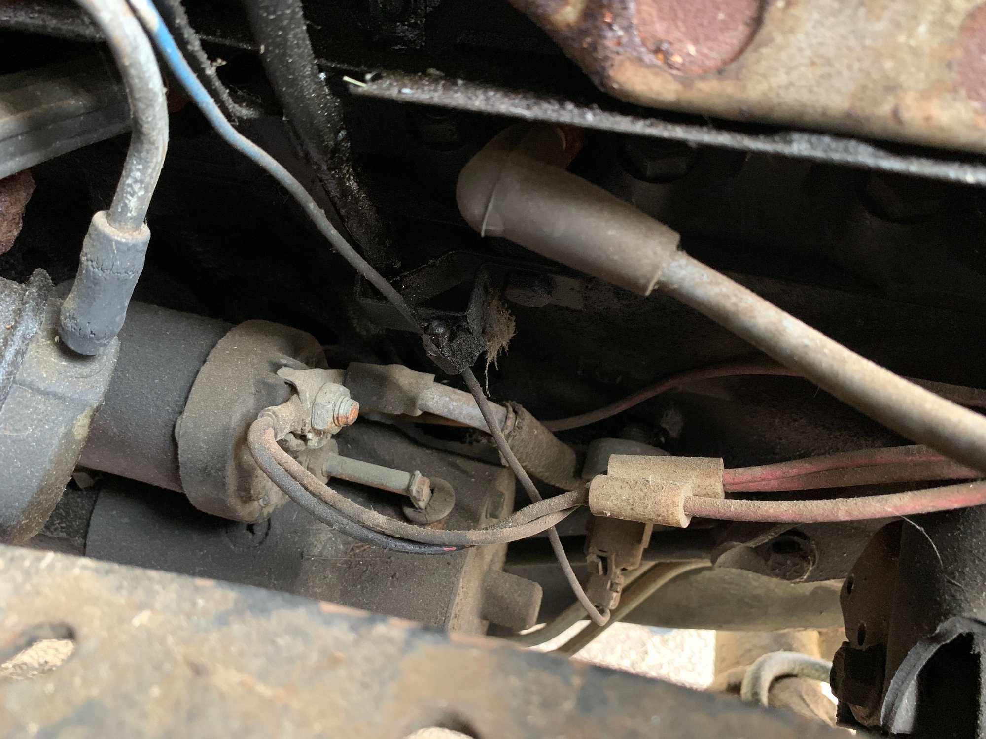 The wiring diagrams that I found for your truck are a little wonky so I dont know the whole starter circuit but we can figure it out. Does that red wire on the starter solenoid go straight up the purple wire by the valve cover or does it stop off anywhere like the side of the transmission?