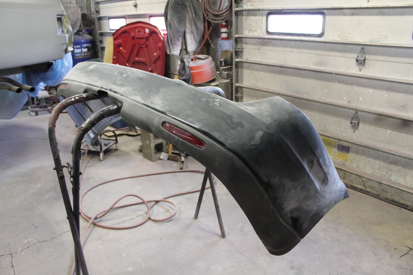 It must have been a weekend for fixing body damage. I painted & replaced the right rear bumper corner the previous owner smashed.