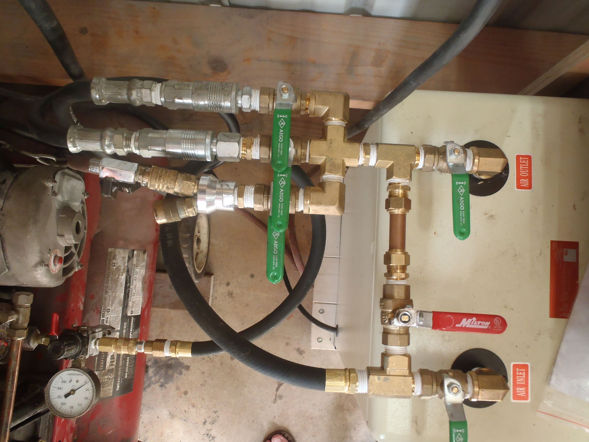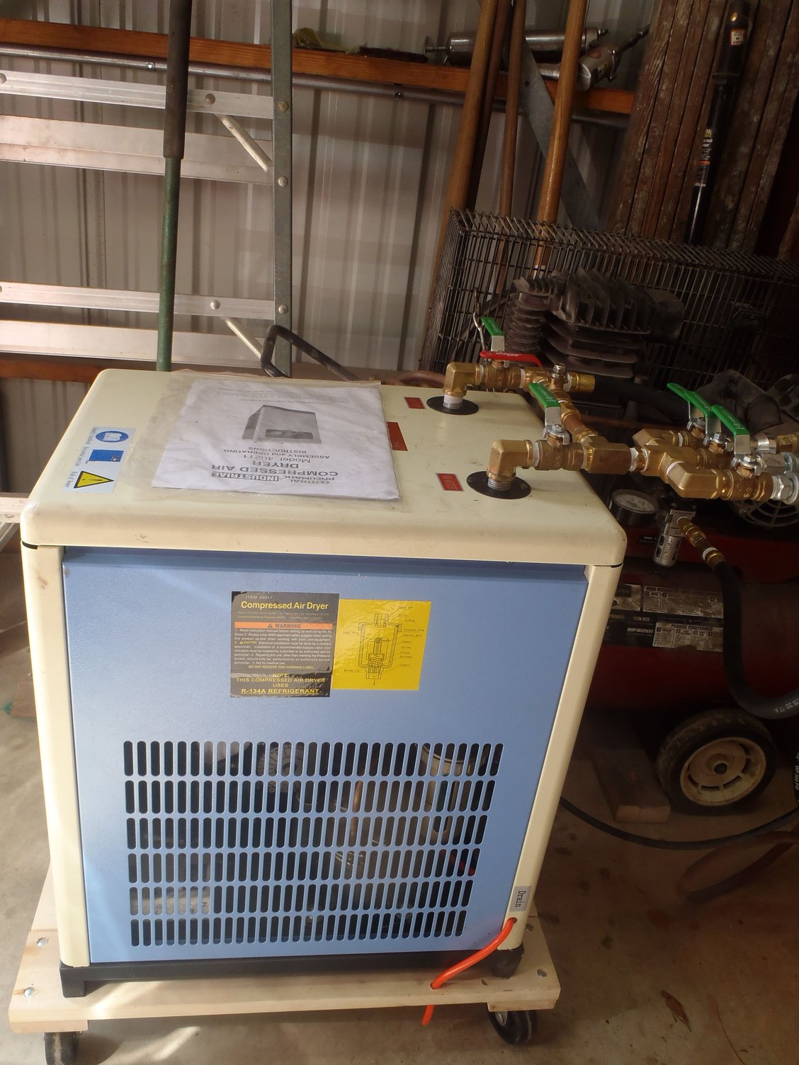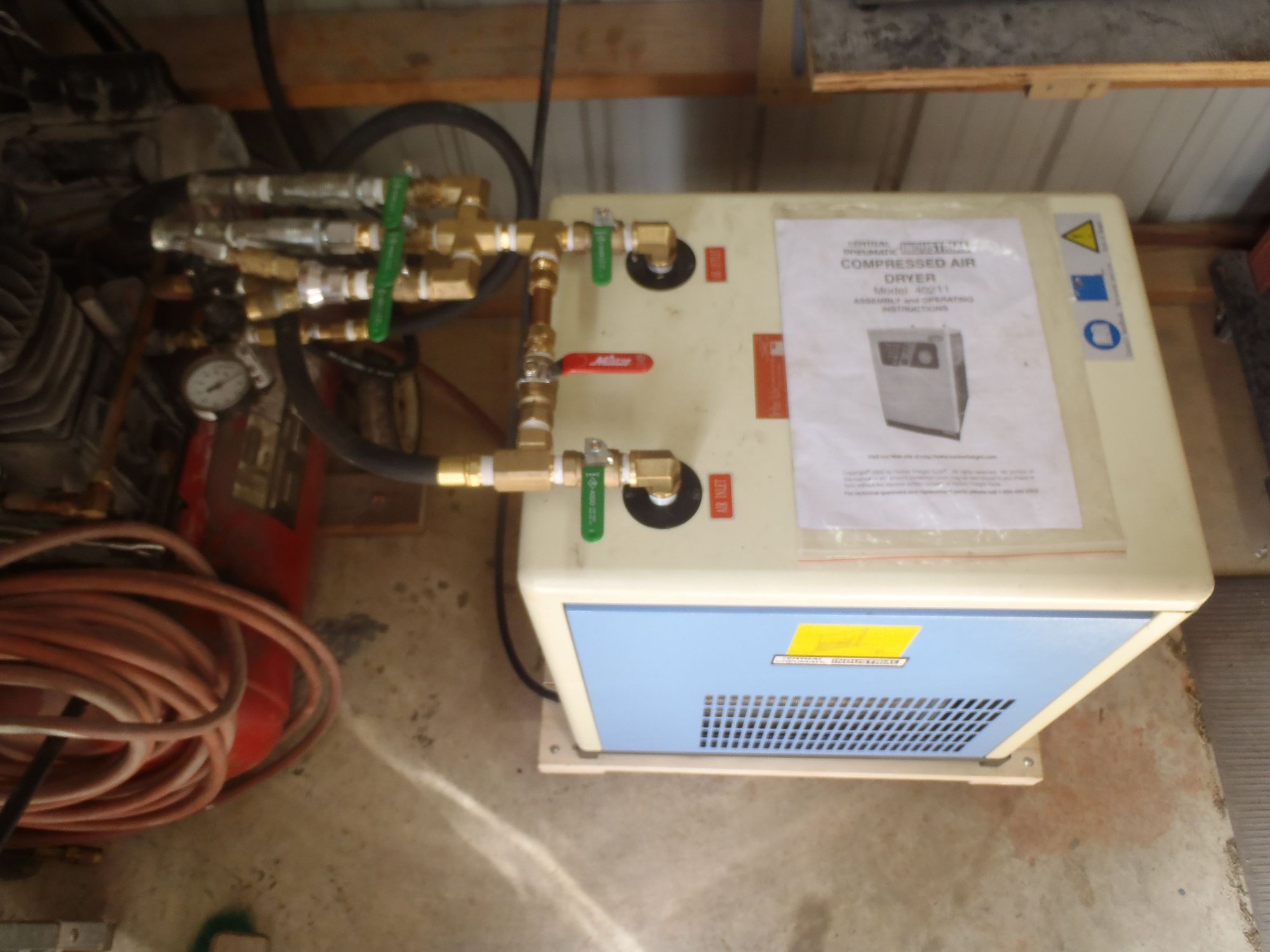 I was looking for ways to have dry air for spraying, blasting and for my air tools. I looked at desiccant dryers but they would not last very long in the hot and humid south. I started looking at AC Compressor dryers and HF had the best price. Attached are pics of my hookup.