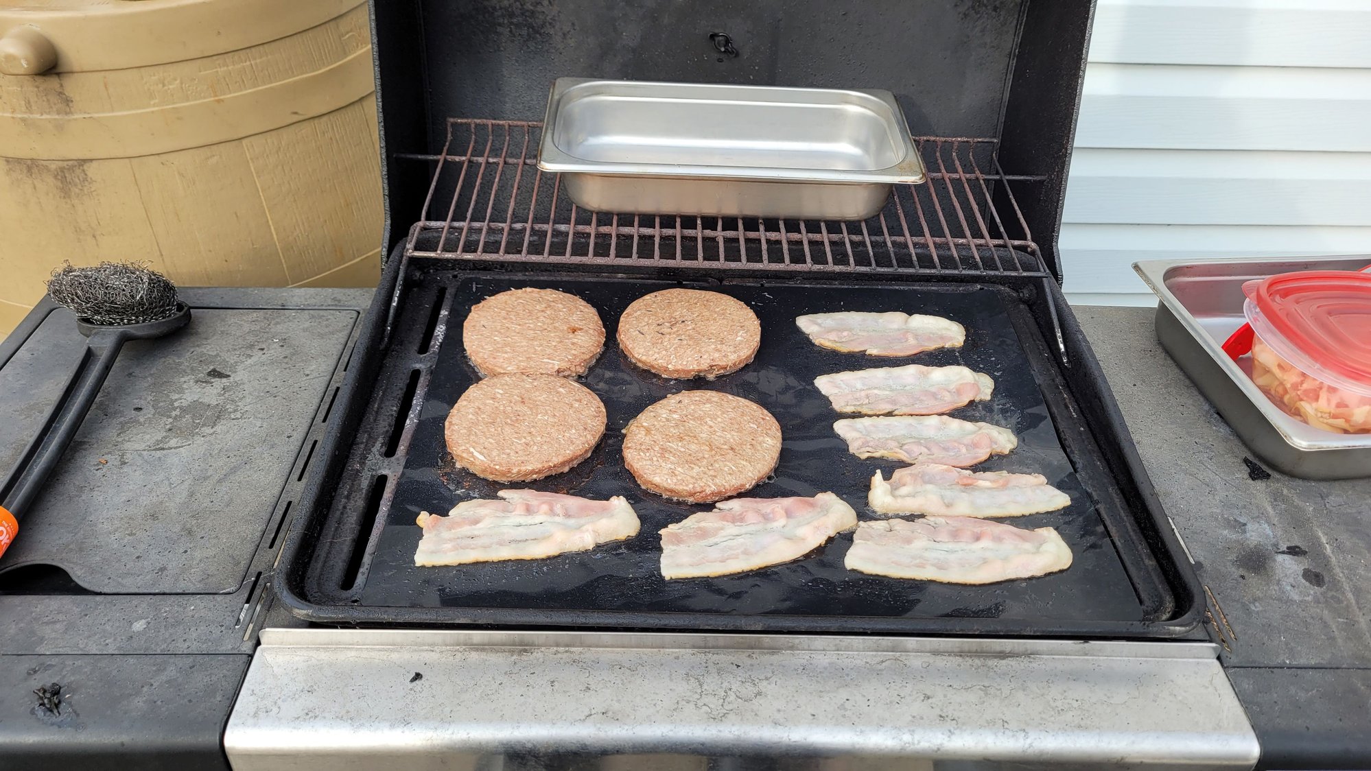 !!!MEAT!!! we got us some hardcore grillers here in the mitten! pork steaks AND brats! ... and steamed carrots to be good boys. roommate is the chef for the night. That old Ford dog dish is now a smoker chips plate. Don't worry it was long since past mint antique condition lol. now it's mesquitey!