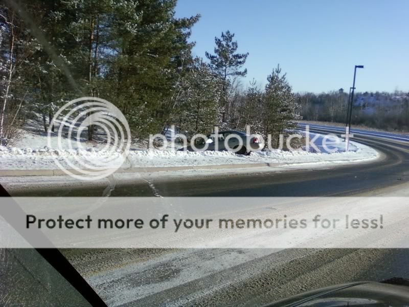 Today I went to school to drop off my final assignment in photography, when I was driving by the exit to the lower parking lot, I noticed a car in the ditch on the opposite side (Gold Nissan Sentra, not that it matters).