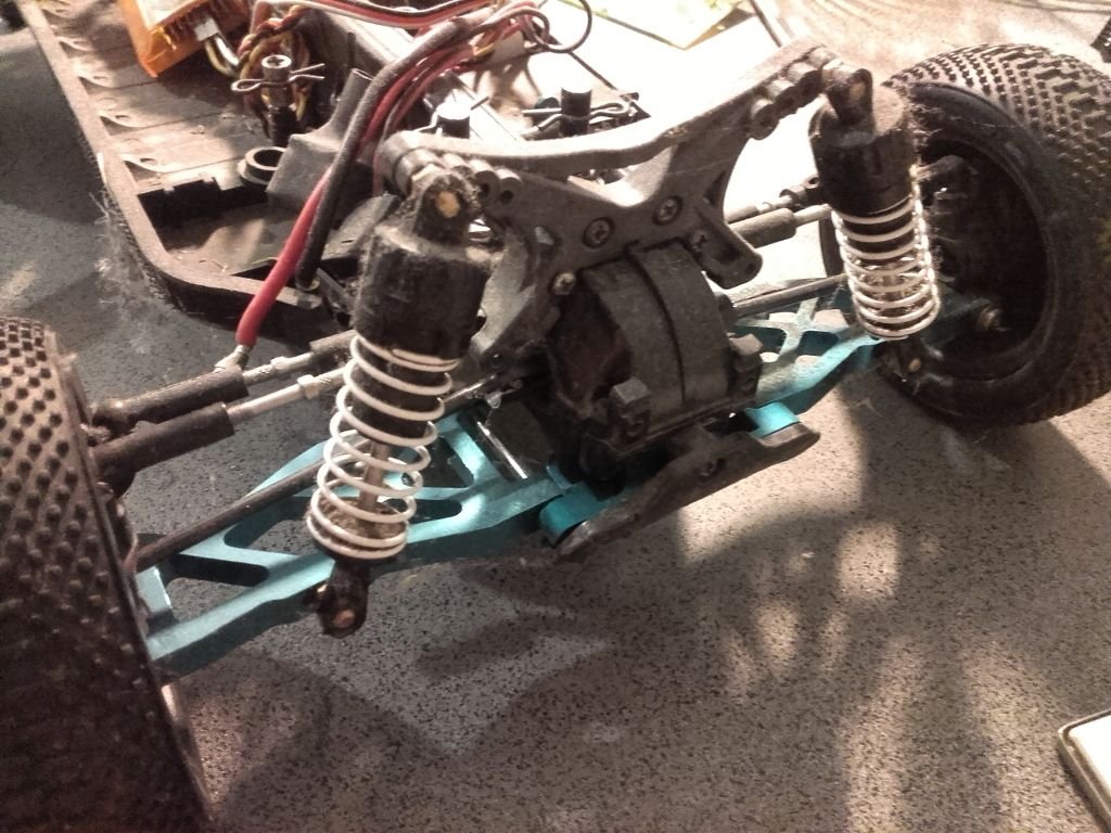 Your assembly seems sturdy and well prepared for the terrain play. A good, aluminum control arms are a must. I've learned that hard way :P I broke one off by hitting a tree with my daughter's ride Then I had no option to get her a new set of aluminum ones. We already crashed some cheap servos too