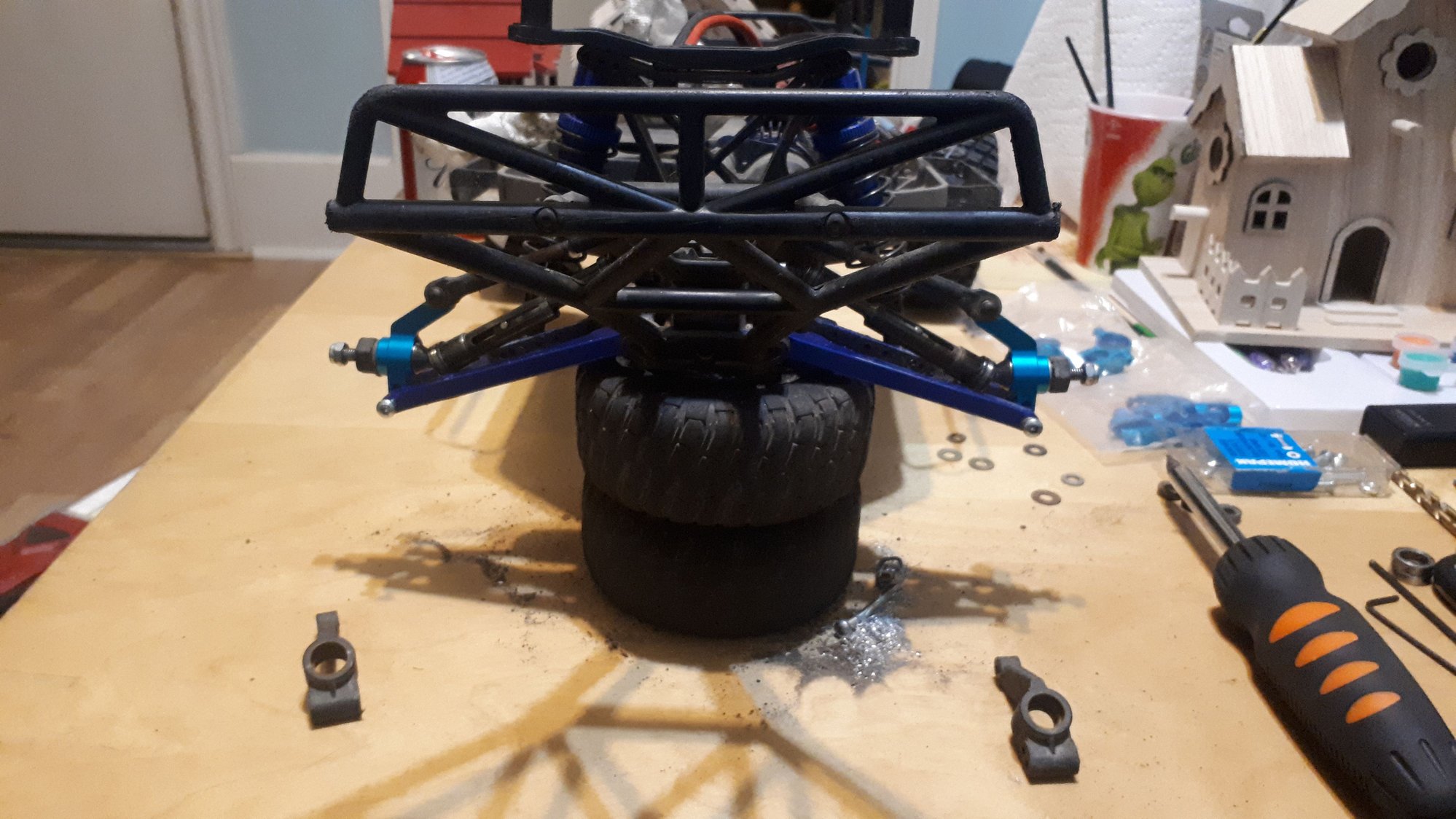 ever since I was a kid I loved the rc vehicles, gotten one anytime I could. Mostly cars and trucks. I picked up a slash 4x4 about 3 years ago. Been doing little upgrades here and there, did the wheel knuckles last night. They aren't the same colour, but I dont mind.