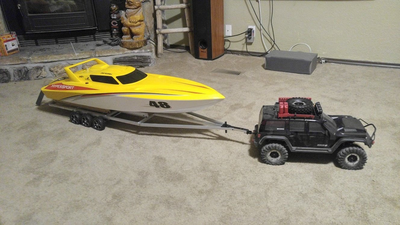 I've had RC stuff for decades. Mostly nitro, I never thought much of the electrics, although I do have a few. I used to have a few nitro helos, but the small, collective electrics are fun and can fly indoors. I have an original Nitro Hawk (highly modified), and original T-Maxx. The Hypersport 48 is gas powered with remote electric start. Hypersport trailer is scratch-built with 3-axle leaf springs, not complete yet but close. I picked up the Everest Gen7 Pro only to tow the Hypersport.