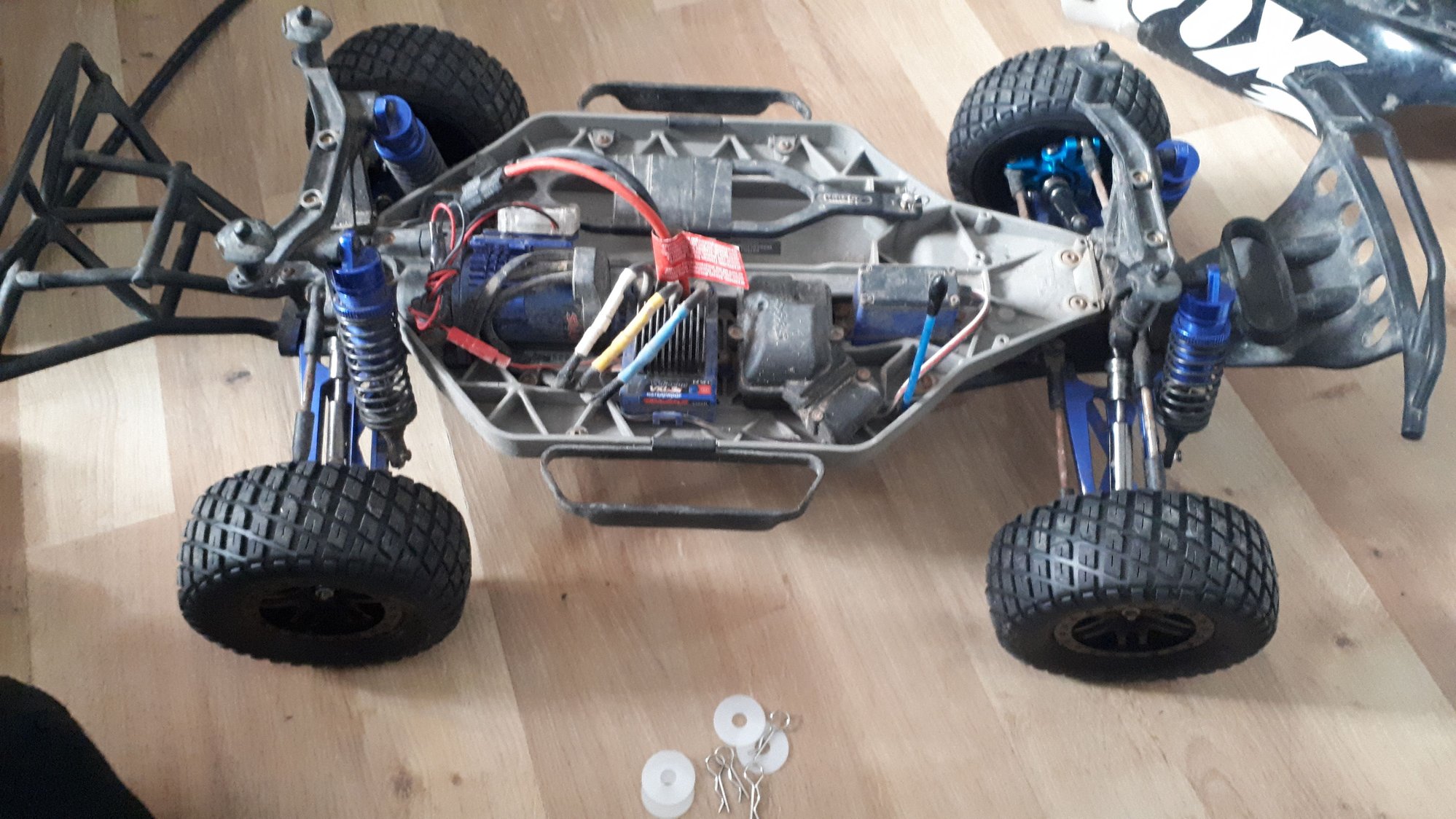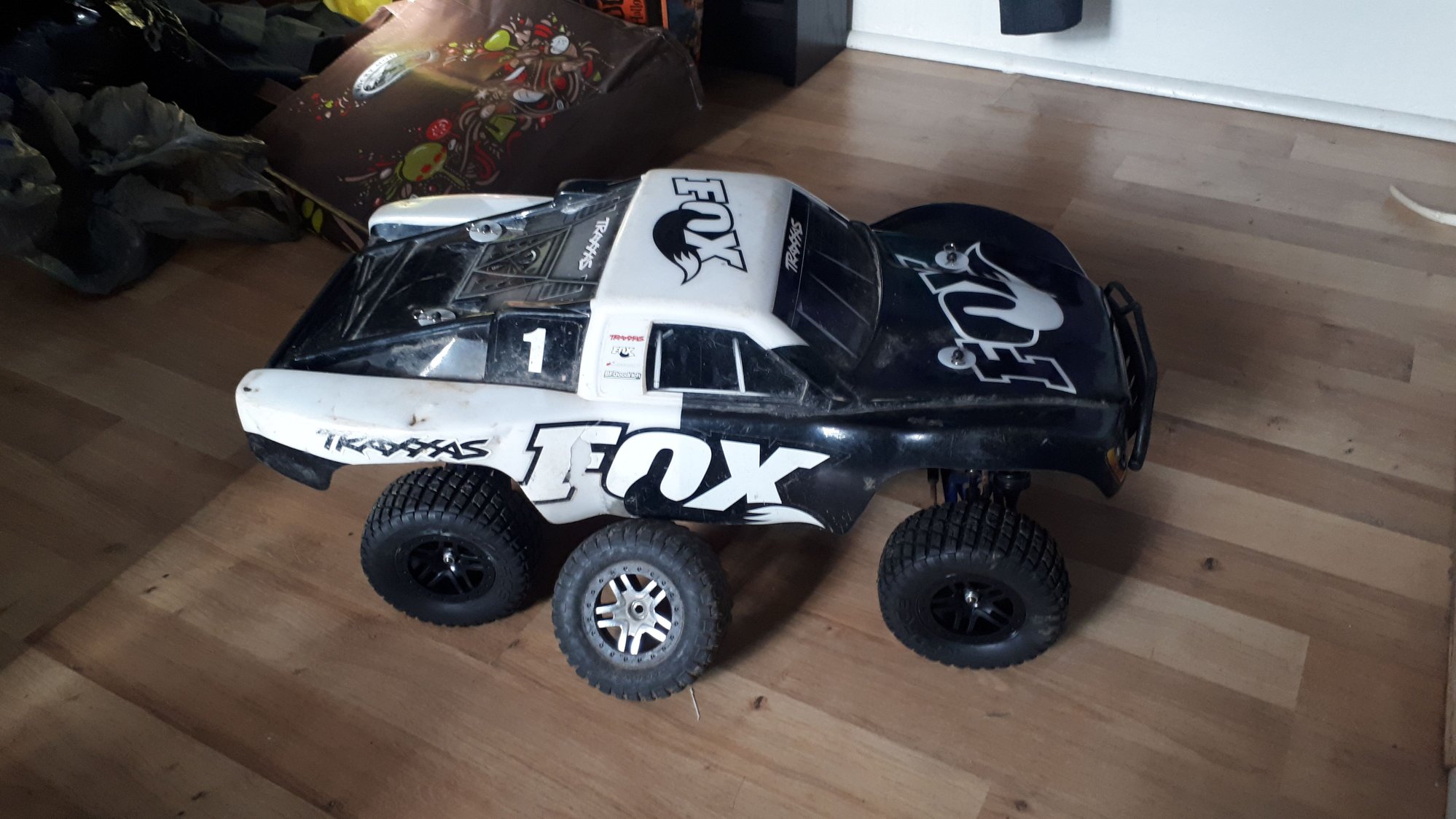 Slash 4x4, fox racing body, original chrome rims, aftermarket black rims and new tires. Fan for the motor, aftermarmet shocks Steering knuckles,hub assemblies and control arms aftermarket aluminum