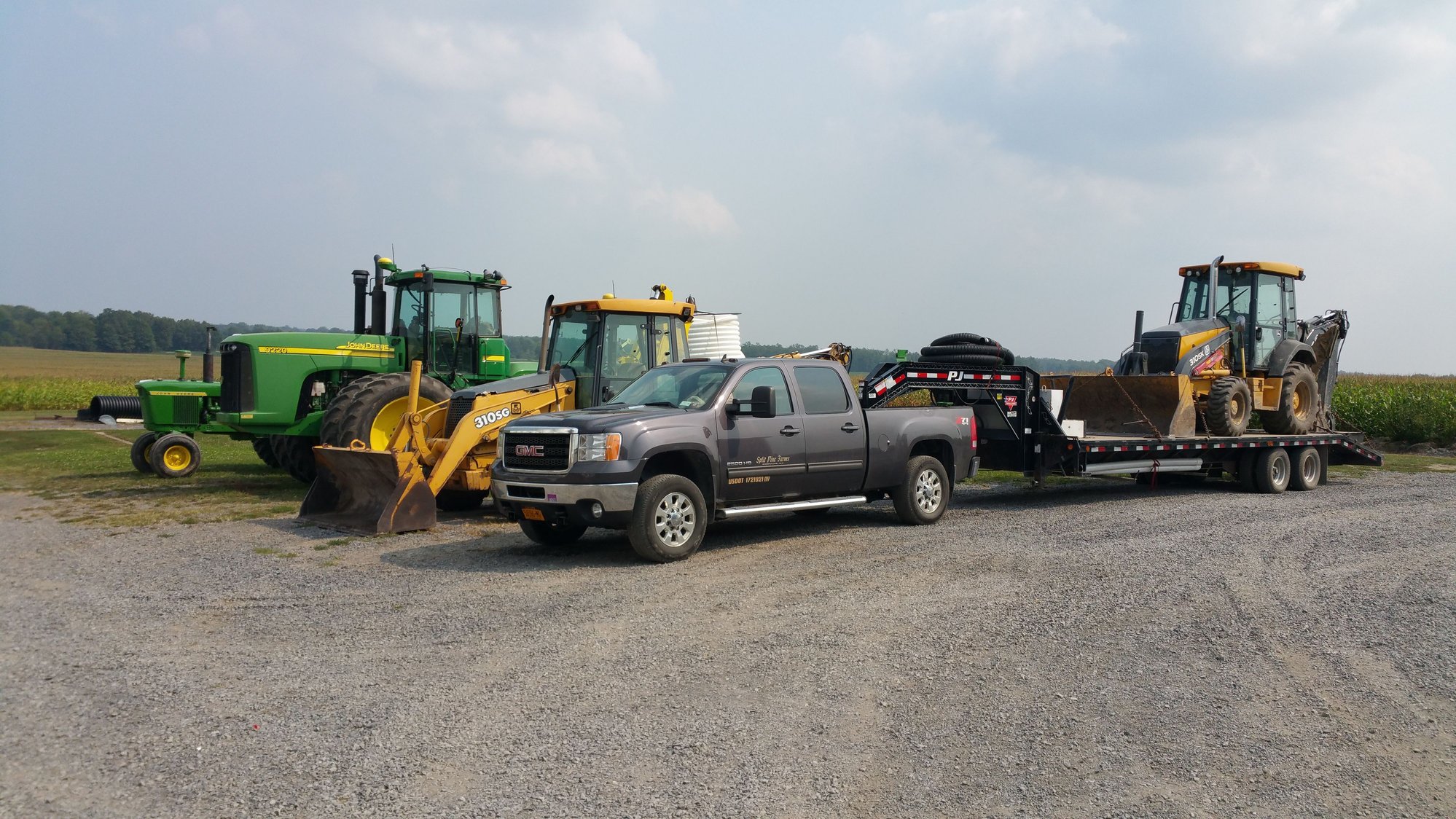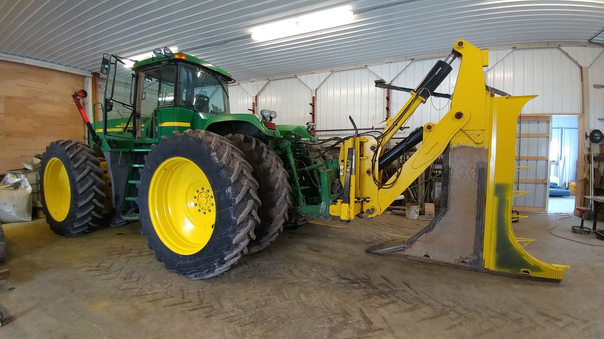 Here is an old picture of our equipment that includes our restored JD 4020 power shift, JD 9220, JD 310SG, & JD 310SK. It doesn't show our JD 6115R that was shown in one of the pictures above: