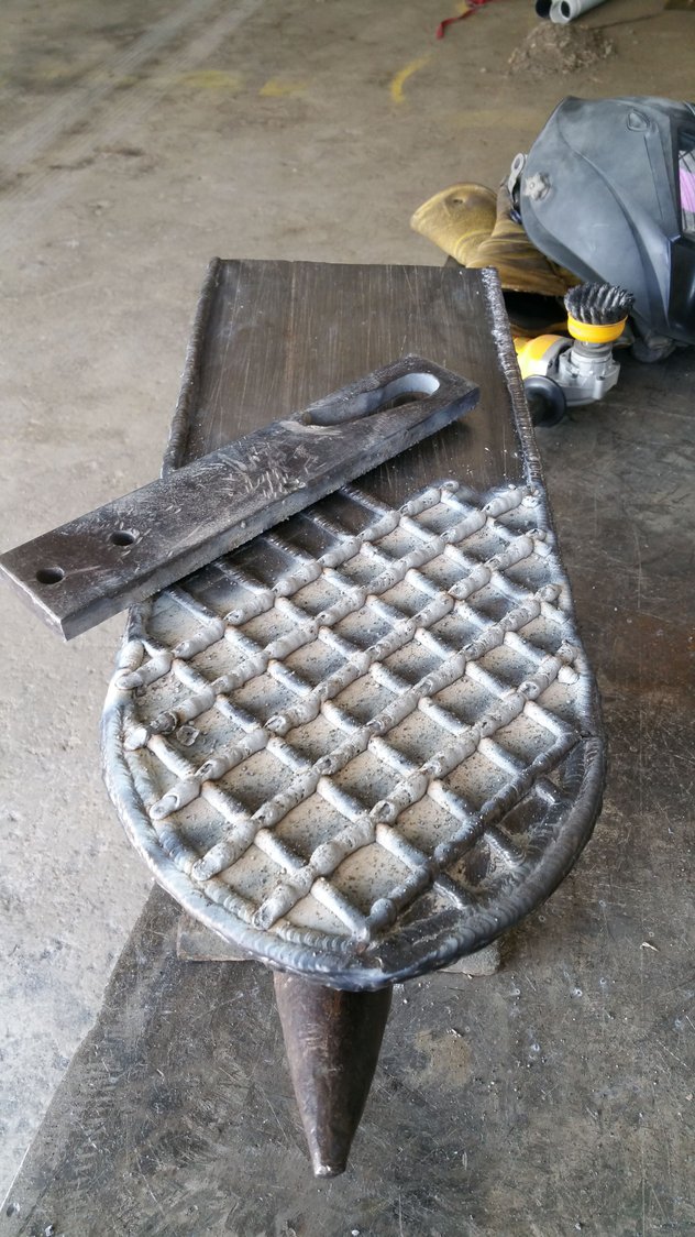 In a good year I'll go through almost 100lbs of Lincore-55 hardface wire rebuilding the wear parts on our tile plow. Here are a few of my work projects of the last few years: Combination drain tile stringer & trench closer fabrication. Mostly scrap steel. All together & checking operation. This ended up being too heavy for our 6xxx series tractor so we ended up just using it as a 3pt hitch mounted trench closer. New 8" boot for our tile plow New 4" boot for our tile plow. Old boot installed 3.6 million feet of drain tile 36" deep or deeper. Our tile plow & tractor used for installation. An in process picture of the plow hitch I redesigned & rebuilt a few years ago and is still holding strong. I had to reclaim the horizontal brackets that house the bushings for the 4" diameter pivot pin and keep all 4 of them in proper alignment while I burned everything together. Hardfacing on 1.5" thick 9" wide AR500 plow point. The cross-hatching on the top captures dirt & extends the life of the point. I will lay down 5-6 layers of Lincore-55 on the underside of the point to provide better wear resistance than the already fairly wear resistant AR500 that the point is made out of.