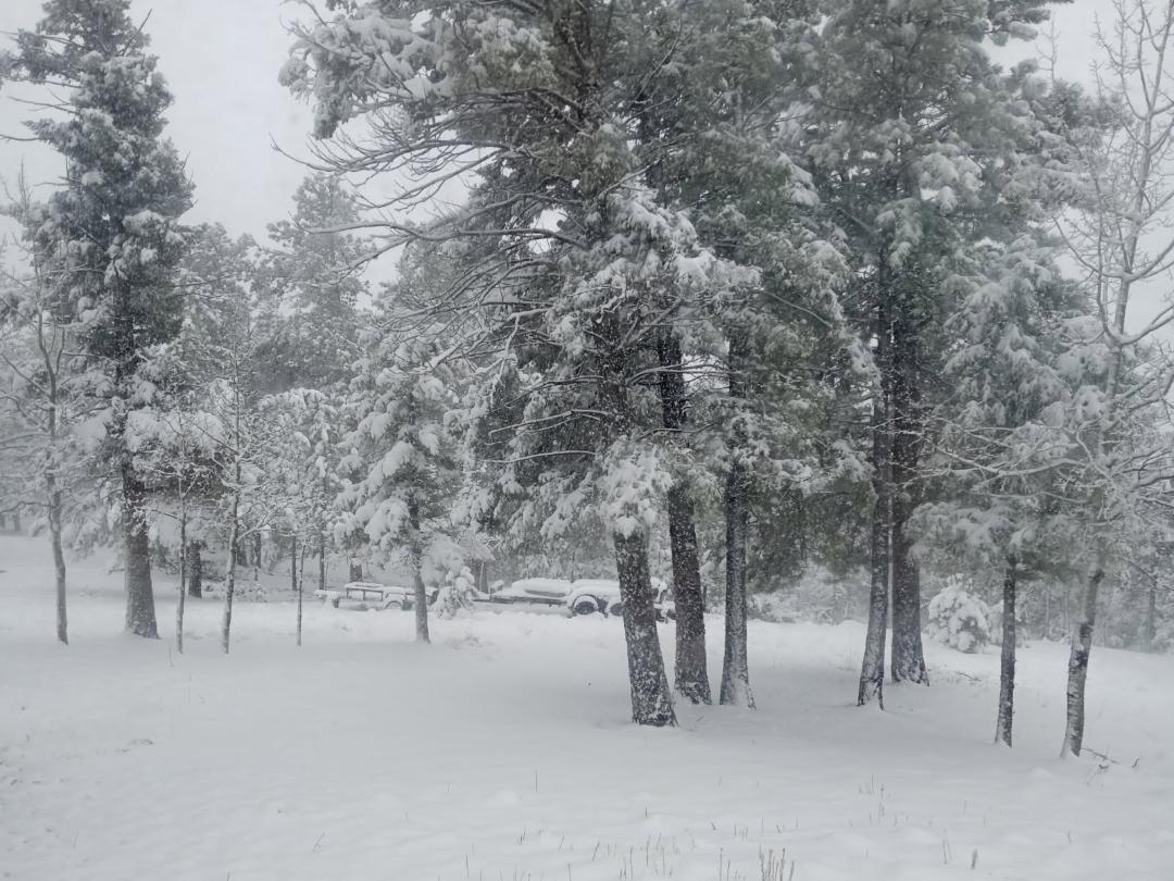 Funny thing is I went down to the little "town" on Wed and there was no snow. We are at 9100 feet and the town is around 8400 feet. Amazing what a few feet in elevation makes to the weather here.