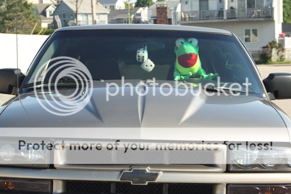 my girl won the frog at the carnival and hes been in my truck since