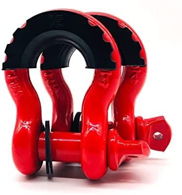 Early model silver Rav4 that has been lowered, with an aftermarket nasty-sounding exhaust, and two red shackles hannging down from the rear bumper with the black shackle protectors people put on the shackles so they can leave them on while not off-roading and look tough. And on this Rav4, the shackles were hanging in a way so that there was nothing for them to hit so that there was no need for the protectors.
