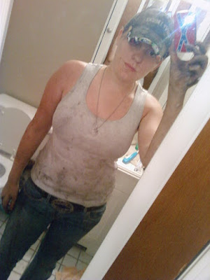 I can't remember for the life of me why I got this dirty... I think it was swapping out my rear-end. And again, my favorite hat and belt buckle lol. I've even got a pic of me in a friggin bikini, with my truck and that hat on... lol. I'm surprised I don't sleep with it on lol.