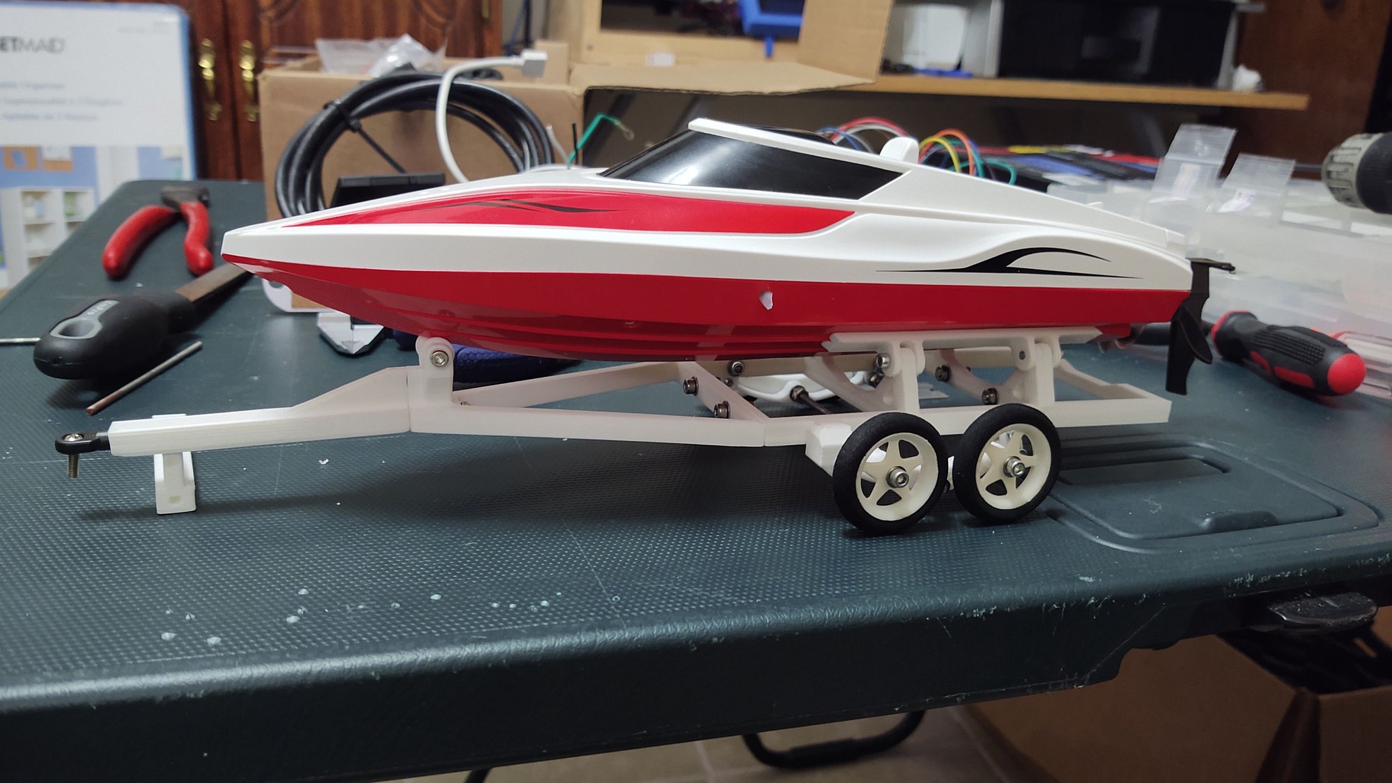 Got one step closer to finishing a design and 3D print of a trailer for a small RC boat