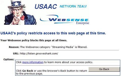 hahahaha that filter is awesome Curtis. There must be a ton of stuff blocked by Uncle Sam lol. Sometime when your not on a gov't computer, check out Grooveshark. It's awesome.