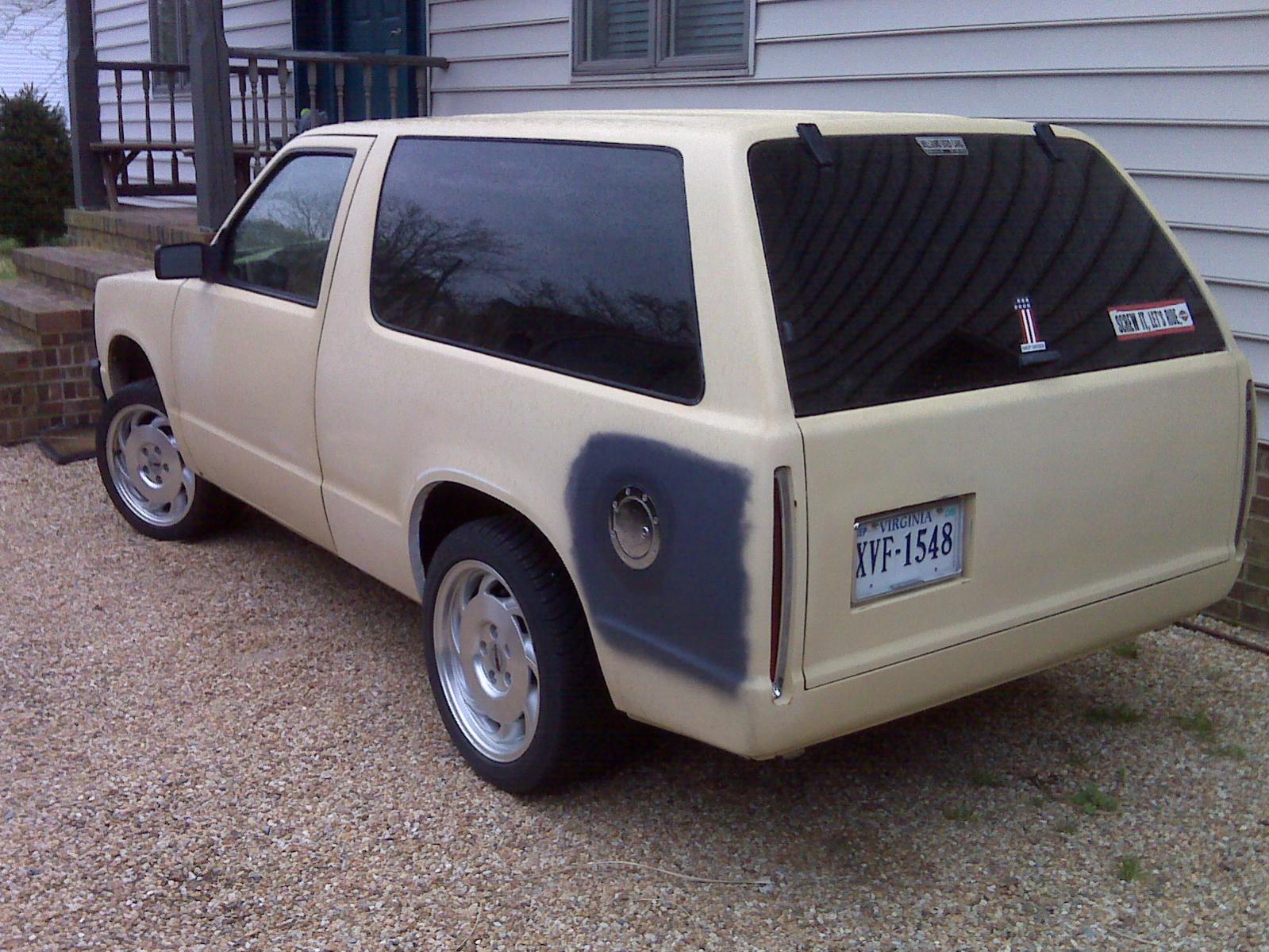 I've got a 93 GMC 2dr 2wd that I'm transforming into a sleeper/ canyon carver. Ive got lots of body work done with lots to go, then the heart transplant. I have a LT1 eng and trans to put in. I have shaved all handles, doors open from the mirror, tailgate opens by hidden cable, fuel door from new gen s10 truck, caddie lights.......and open to suggestions! forgot to mention< hood is home built from a s15 hood with a wrecked escalade hood, i know you can buy a better hood.....I'm cheap!