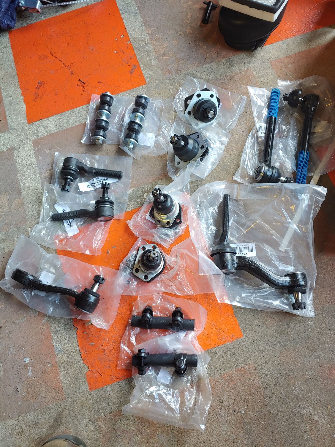 I'm currently in the process of replacing all front end bushings, upper and lower control arms, upper and lower ball joints, idler arm, pitman arm.
