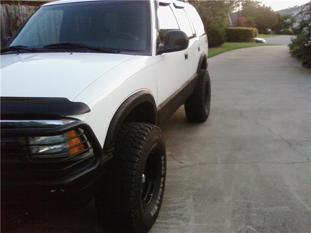 So I'm new here and new to the blazer community kinda. I've had a 92 with a v8 but was just a drag truck. Now I have this 96 S-10 Blazer LS 4x4 fourdoor. It is white with a rhino lined bottom trim. Has a superlift suspension and a body lift. I don't know how many inches total it is though. I have 31x11.5x15 super swamper tsl's and black extreme wheels. Westin front brush guard with daylighters. I would like to get a roof rack and more lights on the rack. I found this site through google while looking up the posilock and found a how to make your own posilock on here. I am doing that this week and can't wait to get it down. Anyway here are some pics. Just let me know what you think. By the way I didn't personally or financially do anything to this truck, I got it this way. The pics are showint the truck with the previous 33" M/T's. I don't have any yet of the new TSL's.