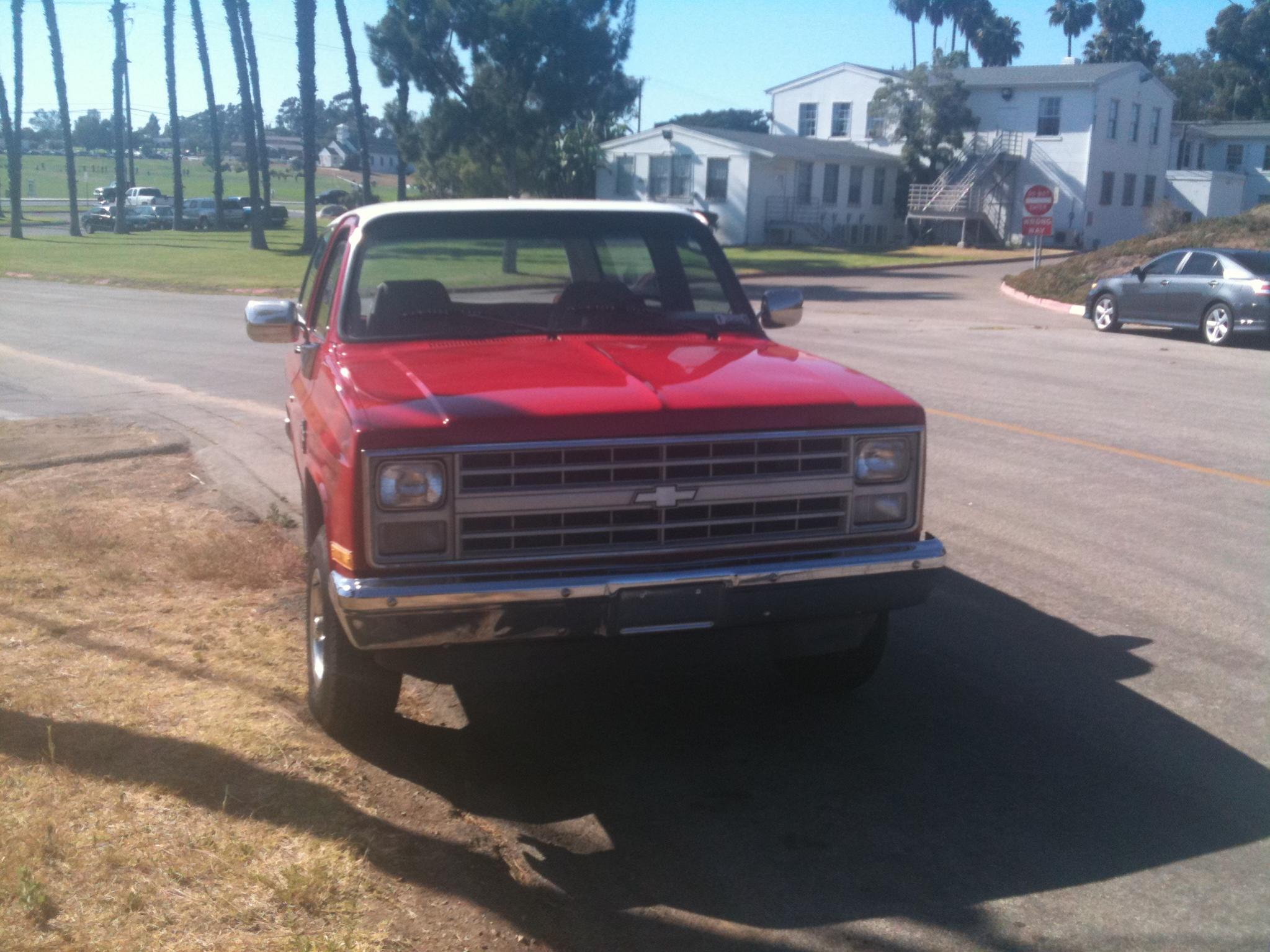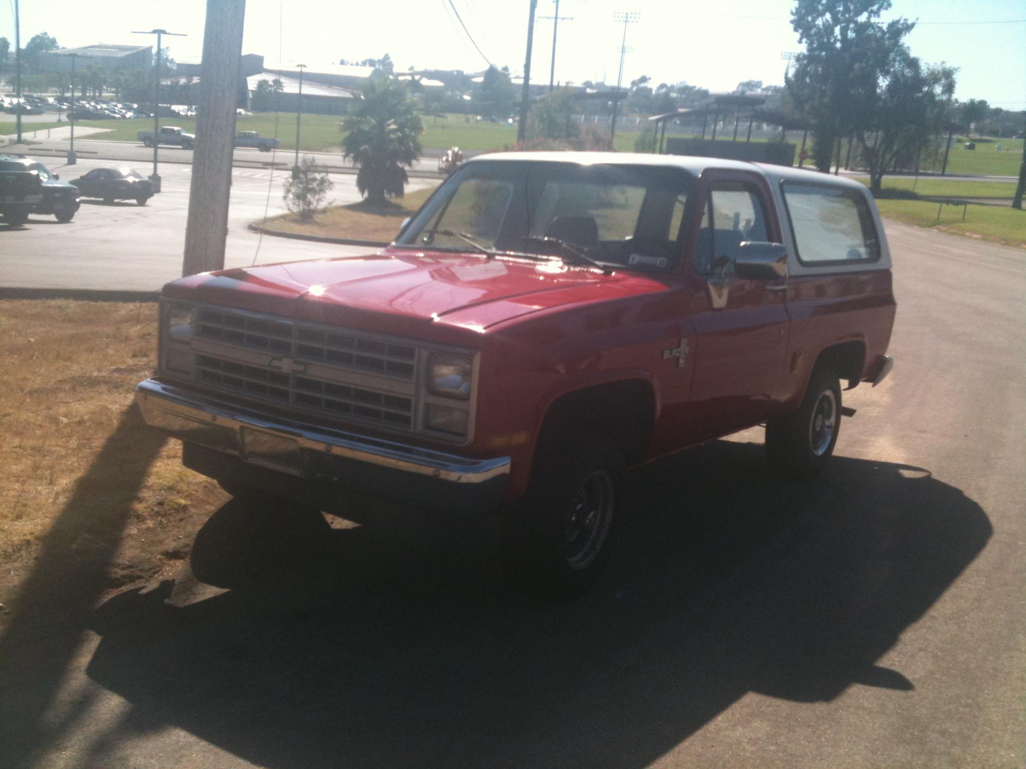Just checking in from SD. I'm a Marine stationed at Camp Pendleton. I've been driving my '87 K5 for about 2 years which I purchased in from Pensacola, FL. It's an old fire inspector's truck ,and I love to work on it.