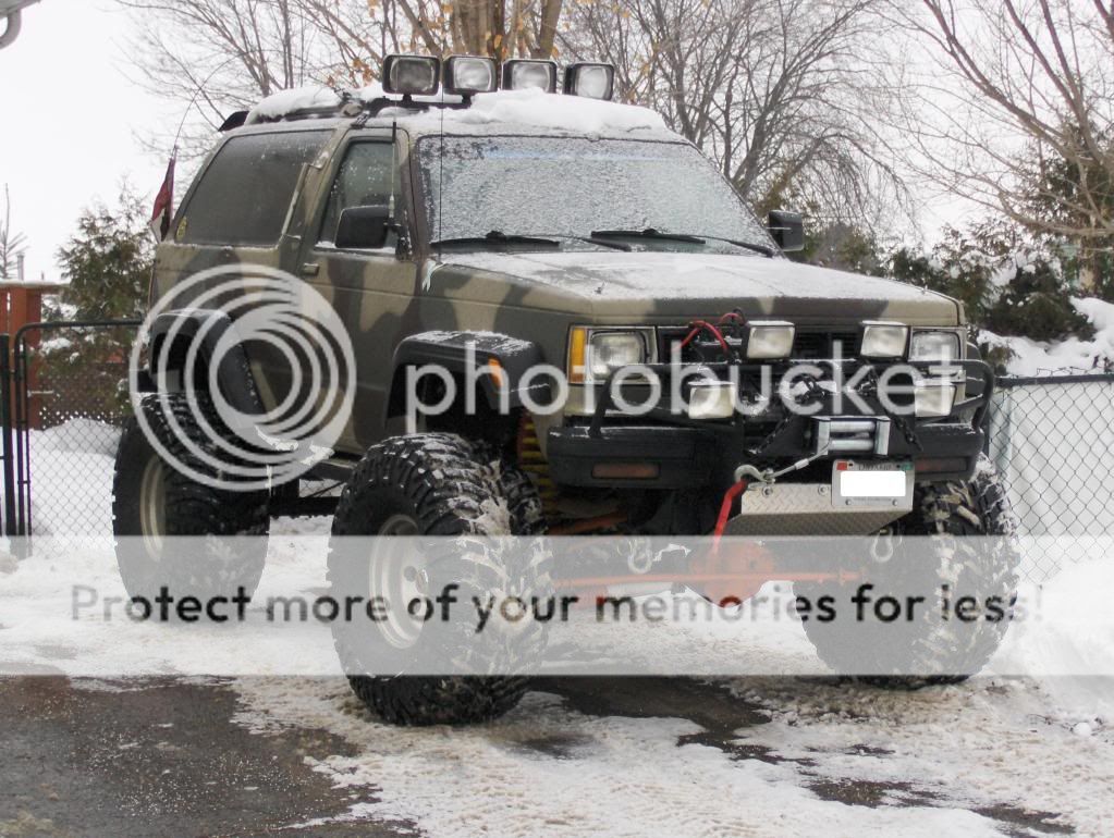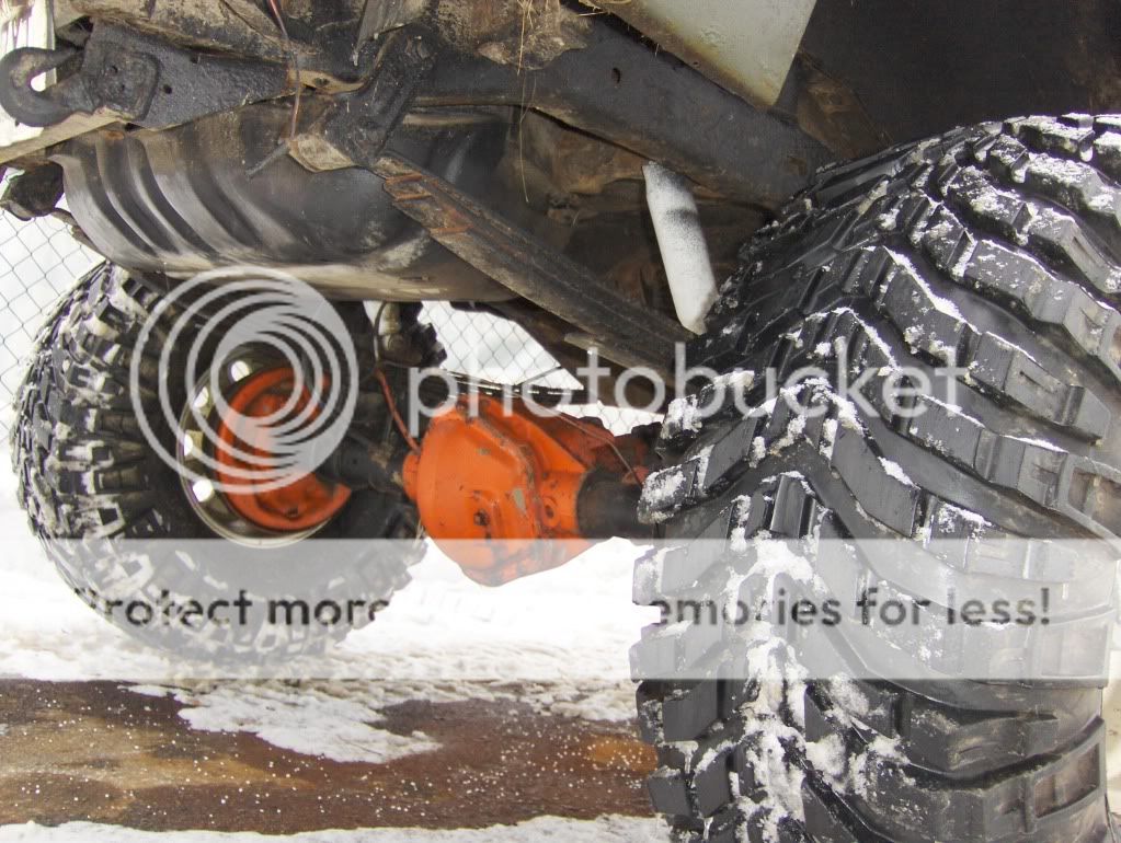 And now it's packin d60 front, 14 ff rear, 468 BBC, trac bars, reg cab with roof cut and blazer box on it, WAY to much to list... here are a couple more recent pics...