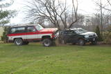 The K5 climbed right up on that rock without a problem although the driver door was a bit difficult to open when it was up there. Check out how much the frame tweaked in relation to the body in the middle shot on the top row!