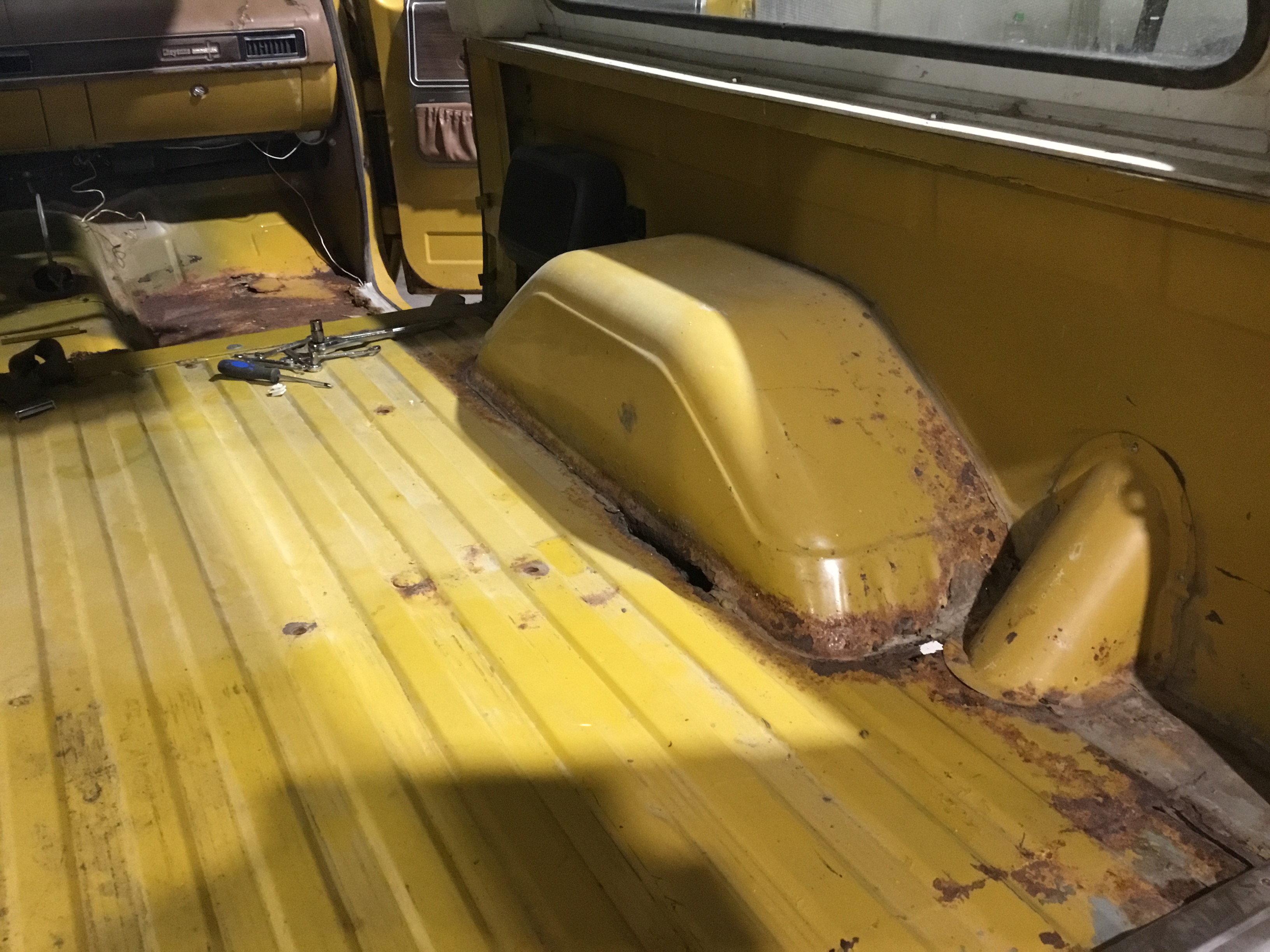 The front floor pans (under the seats) are different and I have not found the correct ones anywhere. I think this is a problem for anyone with a '73 thru '77-ish (whenever they moved the front of the bed floor back to give a footwell to the rear seat occupants).