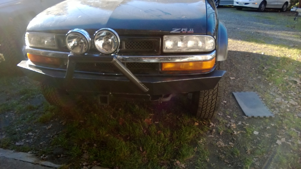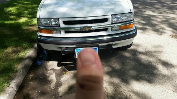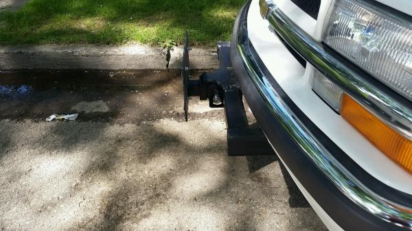 While people are making and ordering bumpers for there Blazer i decided to make a front hitch/push bumper for mine. I mounted my license plate on 1/4" steel plate with the 2"x2" tubing to put in my hitch receiver. I am going to make a bigger license plate holder for winter time so if i encounter deep snow it will act as a make shift plow.