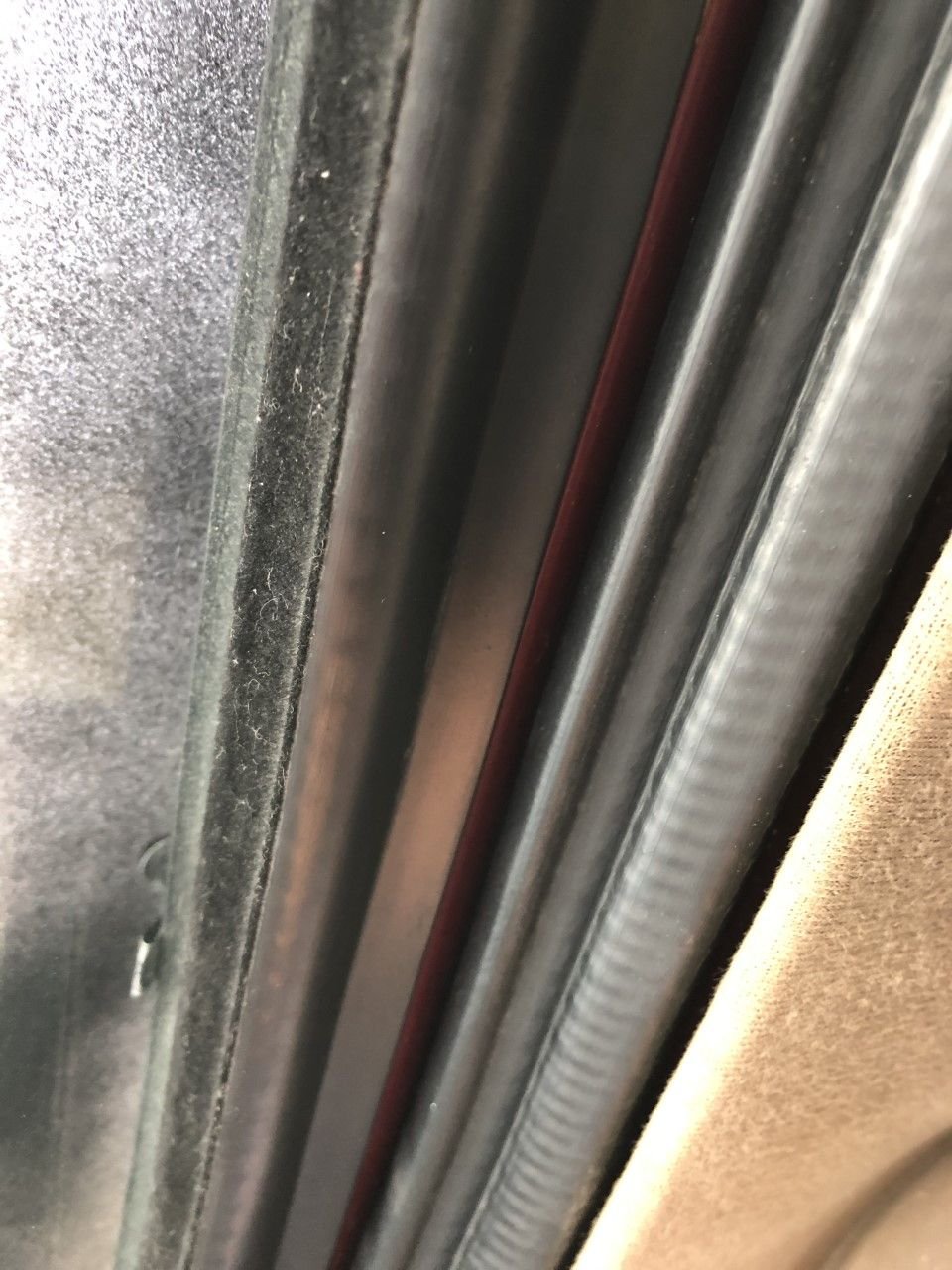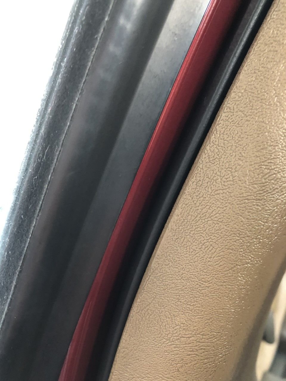 I'm thinking it could be the seal. There's the one that goes on the body, then there should be a piece that goes up the length of the door, on the angled part only.