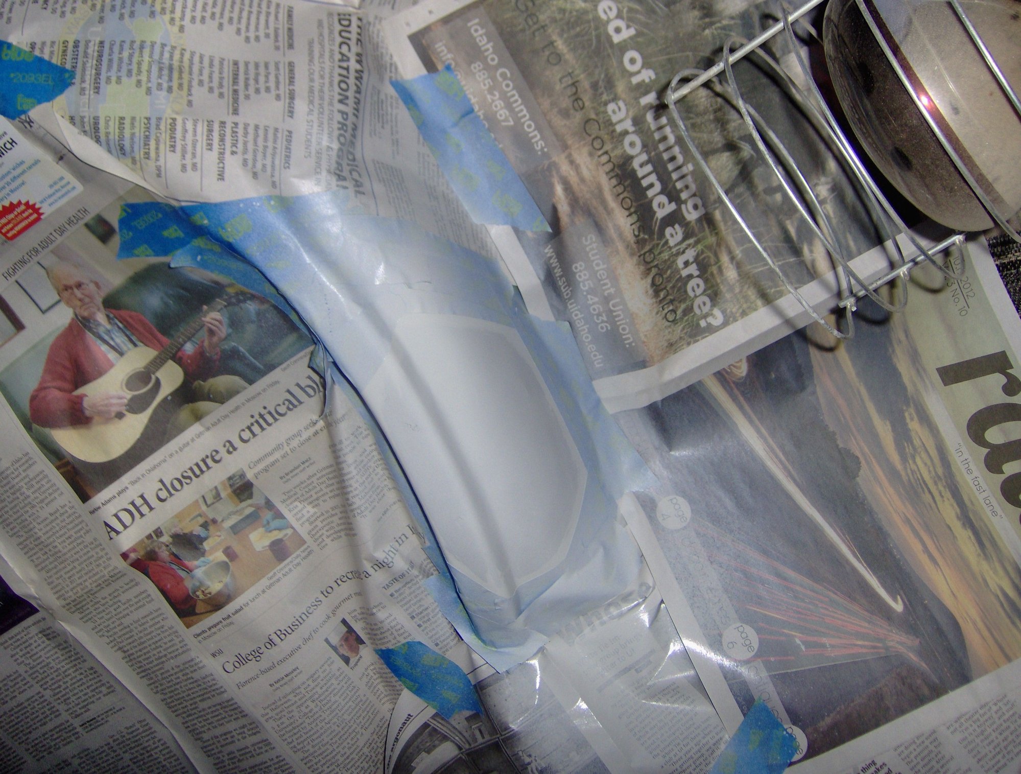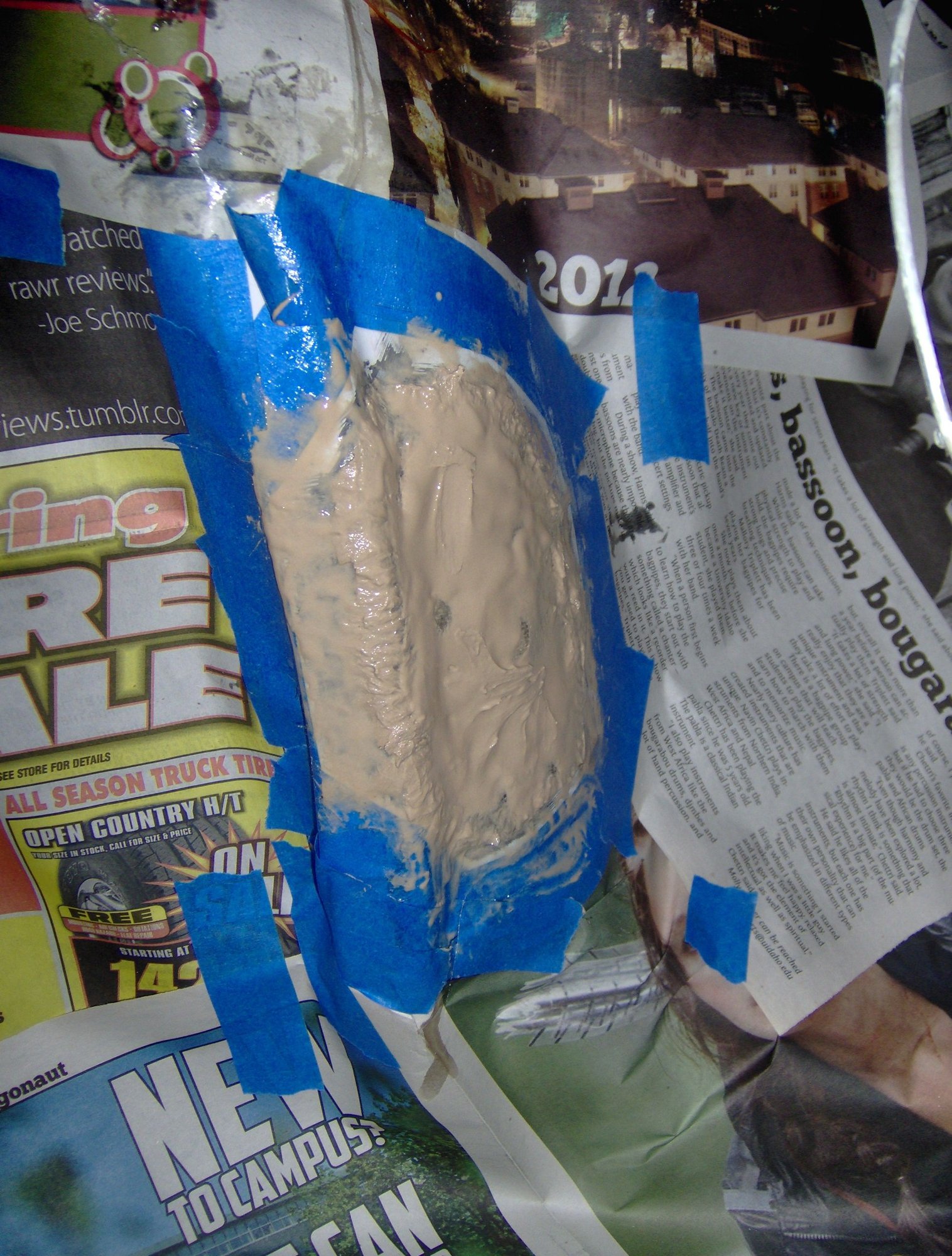 I used rust inhibiting primer on the inner surfaces before I bonded the epoxy to the inside of the bare metal after which I covered the hole from the outside.