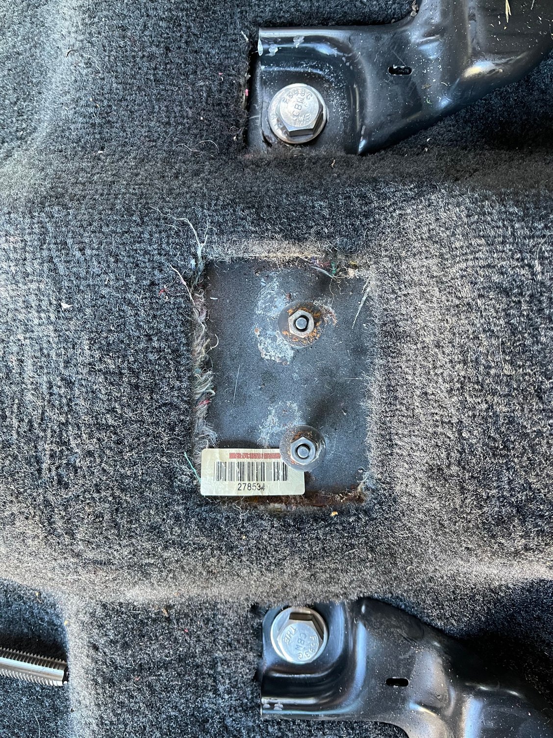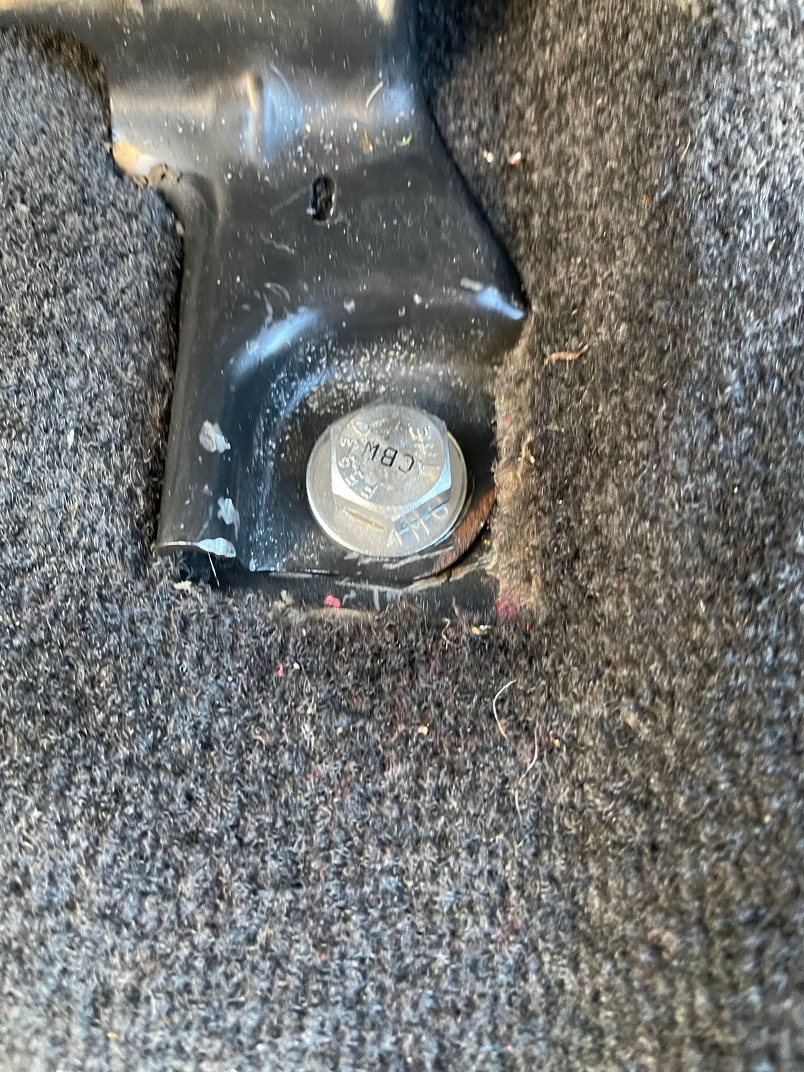 Once everything is in place and tightened down if you’ve done the drivers side find the metal shavings under your truck and prep and pain the area you’re new bolt has come through to prevent future rust. These things are trash Drivers side Tapped Drivers side drilled not taped - you can see asphalt under truck Stainless steel bolt - drivers side Both bolts