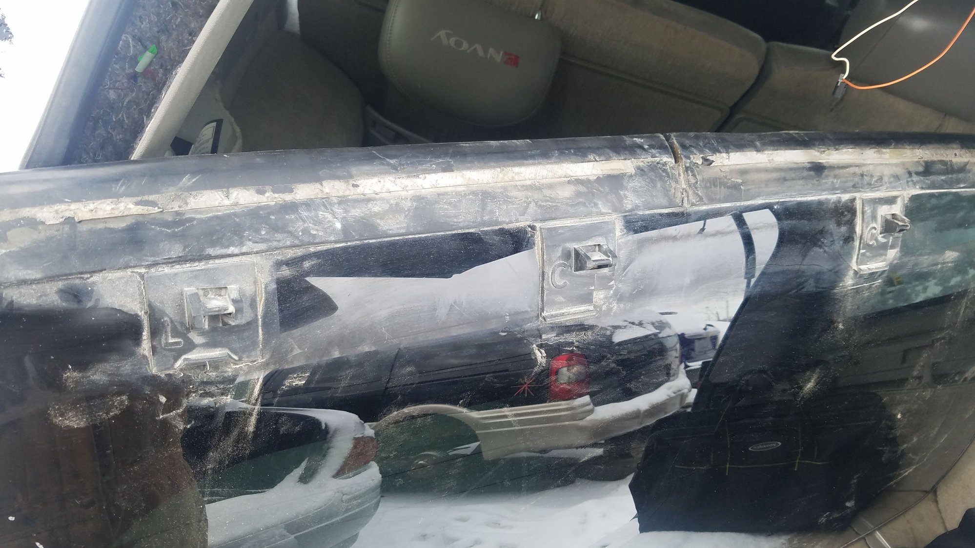 Here are some shots from the junk yard of the connecting parts on the rear window;