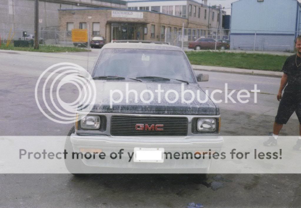 You might be able to get away with the HUGE bowtie off of the new full size trucks, it may be large enough to cover any evidence of the old GMC being there... but it could end up looking tacky. You'll also need the headlights off the Jimmy, and the bumper skin (bumper skin because there'll be a big space between the grille/lights and the bumper, that's why there's plastic under the signal lights on the Blazer, to take up this extra space.