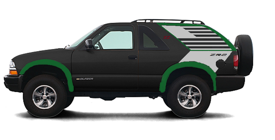 I decided my 98 Blazer could benefit from a little more visual appeal. I found a metallic emerald green paint I liked and also wanted to use a vinyl cutter to make some decals.