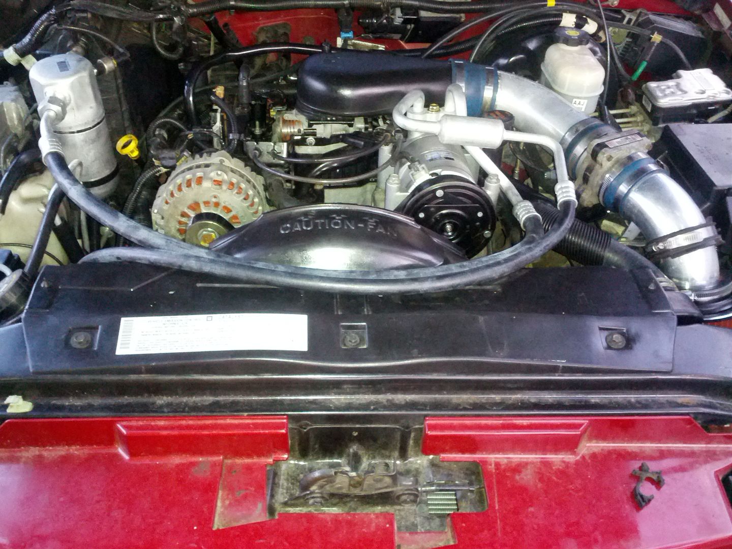 I use a Dodge Intrepid fan. I've seen two different types of these fans, one with more rounded edges and one that's more flat and squared off around the sides. I used the rounded one. I don't have many pictures of the fan before I started messing with it, but I do have this picture of a sticker that is on it. https://i113.photobucket.com/albums/...507_191205.jpg I cut off the original mounting tabs on the sides of the fan, 2 on each side. After that, the fan will almost drop right onto the radiator and covers the entire core. No way to mount it at this point, but I had something that fit. https://i113.photobucket.com/albums/...507_190832.jpg https://i113.photobucket.com/albums/...507_191157.jpg https://i113.photobucket.com/albums/...507_191229.jpg https://i113.photobucket.com/albums/...507_190922.jpg I wish that I had some pictures of my mounting solution, but I think I was just trying to get everything back together at the time, so I didn't take many... For the bottom, I took some flat stock aluminum bars, bent 90 degree angles in them, and bolted them to the bottom of the fan with the bent out part facing downward. These line up and drop into slots that the original fan shroud dropped down into, so that supports and locates the bottom of the fan. For the top, I created 2 more straps in the same manor, but I actually bolted these directly to the top of the radiator through some small holes made in the very top lip of the radiator core. You can see them in this photo. https://i113.photobucket.com/albums/...512_200129.jpg To keep the radiator in place, I ended up modifying the original upper part of the fan shroud (since that's what keeps the top of the radiator in place in stock configuration) and reusing it. I left enough material to where it almost looks untouched at first glace. Doing this also let the AC lines rest on it just as they did originally, so I don't have to worry about them getting chafed. https://i113.photobucket.com/albums/...512_200205.jpg https://i113.photobucket.com/albums/...512_200633.jpg https://i113.photobucket.com/albums/...512_200641.jpg As far as wiring, I originally had them wired up to come on with the AC via the compressor clutch power and with a temp probe in the passenger side head. The Intrepid fans are 2 speed, and I had these two "triggers" wired to relays that controlled the two speeds, so they were completely independent of each other, which was intended as a fail-safe. https://i113.photobucket.com/albums/...510_173052.jpg That ended up not working as I had planned though... I had some AC issues and the freon leaked out, so that trigger stopped working because the AC wouldn't engage the compressor clutch. Then for whatever reason the first temp switch I installed in the passenger side head failed, I replaced it, and the new one worked for about a month and gave out too. After almost overheating a few times I threw all that wiring out and wired it directly to an ignition on source to trigger the relays, both speeds, and that's how I ran it through the rest of that summer. Once I got around the rewiring it, I installed a 3 position switch in the roof console (along with some other switches for lights and winch arm), so now I have full control of the fans. It's still fed through ignition power so the fans will only run when the ignition is on, but I can either have them run on low speed (which is normally where I leave it, as even the low speed is adequate enough to keep the 4.3 cool with the AC on in the Florida summer) or I can run both speeds and kick it into high speed, which I use every once in a while if I'm pulling my trailer or if I run into a store and the wife decides she wants to stay in the truck with the AC running or something. I can also completely shut the fans off with the switch, which I use if I'm on the highway and there's plenty of airflow to not need the fans on. It's maybe an overkill setup, but I like the control I have over them. https://i113.photobucket.com/albums/...511_213926.jpg |