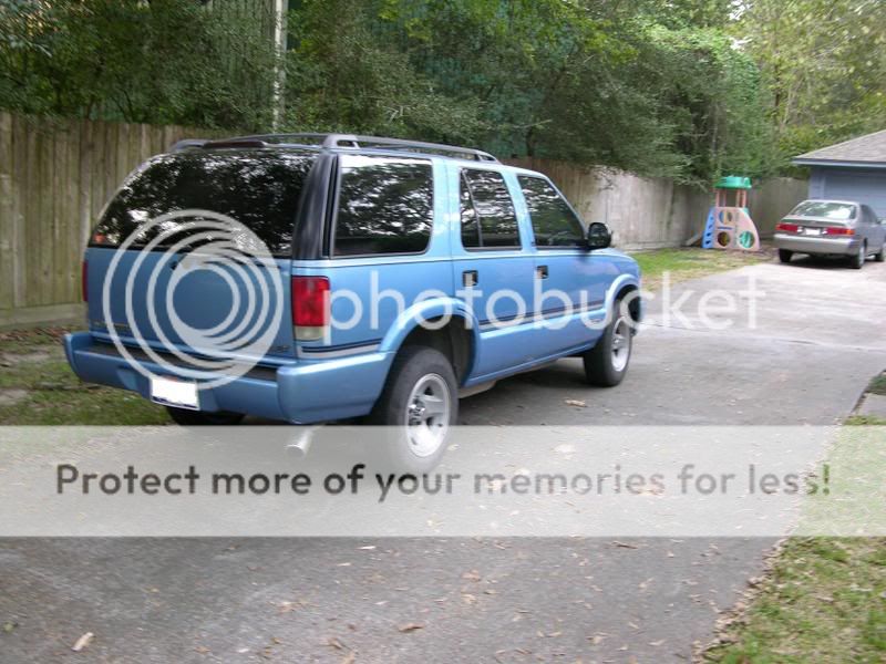 oh my gosh!!! and I thought I had originaly wanted the bright blue chevy color.....wow I love it!!! blue is my favorite color!!!!!!! I will trade ya!! ha haa.....yeah those tires are kind of small...my stock tires are bigger....but I have a 2000....awesome blazer..looks clean..and again...I so love that color!