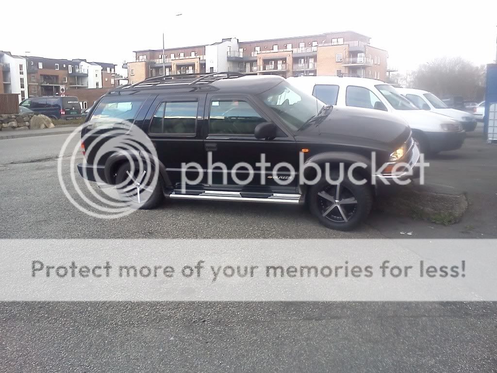 The best picture I have right now! The rims are American Racing AR698 Razor rims, of course I drove 800kms 1 way to get them, great deal though. called around all around to find another one just for a spare. To find out that they are discontinued. I live in canada and called about 8 places in the states with no luck. so I get bored one day and decide to check out summit as I have bought from them before. go to the bolt pattern and rim size I need and then decided to go to clearance. What do you know they have them. Give them a call up to make sure they actually have it (Thank god I only need 1). The guy answers and I tell him the part number and he looks it up and he comes back about to say sorry sir we.... and thats when I tell him I only need 1 and he says o wait let me just put in 1 for quantity. Comes back and says your in luck. To some that may not seem like a big deal, but when you decide well I would like the same rim as a spare. just cause you have a tire rack on the back now and want it too look good back there too lol.