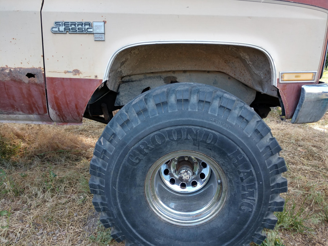 I have 44" tires on my 82 k10 suburban with a 6" lift and major trimming. It still rubs offroad. I'll find a pic.