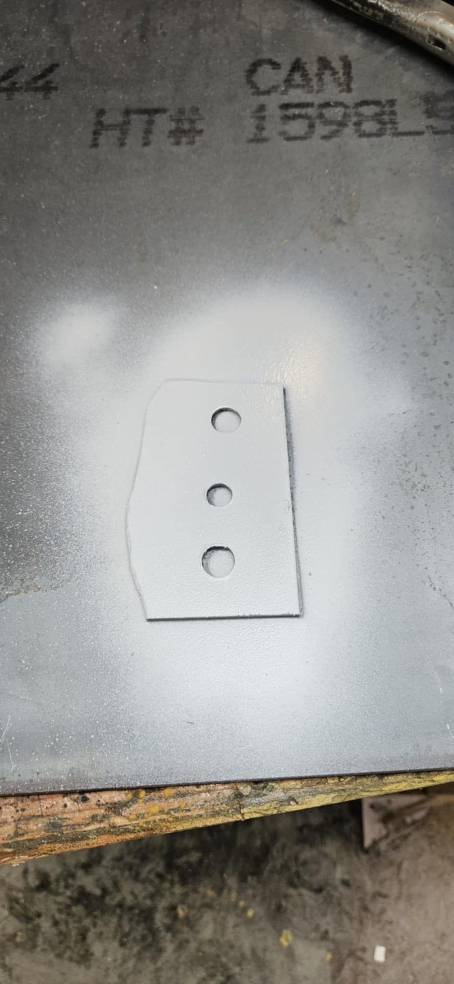 this is the plate I created from 11ga steel (roughly 1/8") along with an extra hole for a plug weld. (That's weld-through primer)
