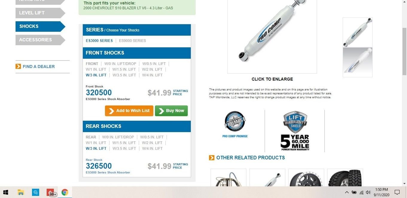 I have the 2.5 in Rough Country lift on my 2000 LS 2dr 4x4 Blazer. I want to replace the leaf springs, spring bushings, and get four new shocks since I think the ones that came with my lift kit are shot.