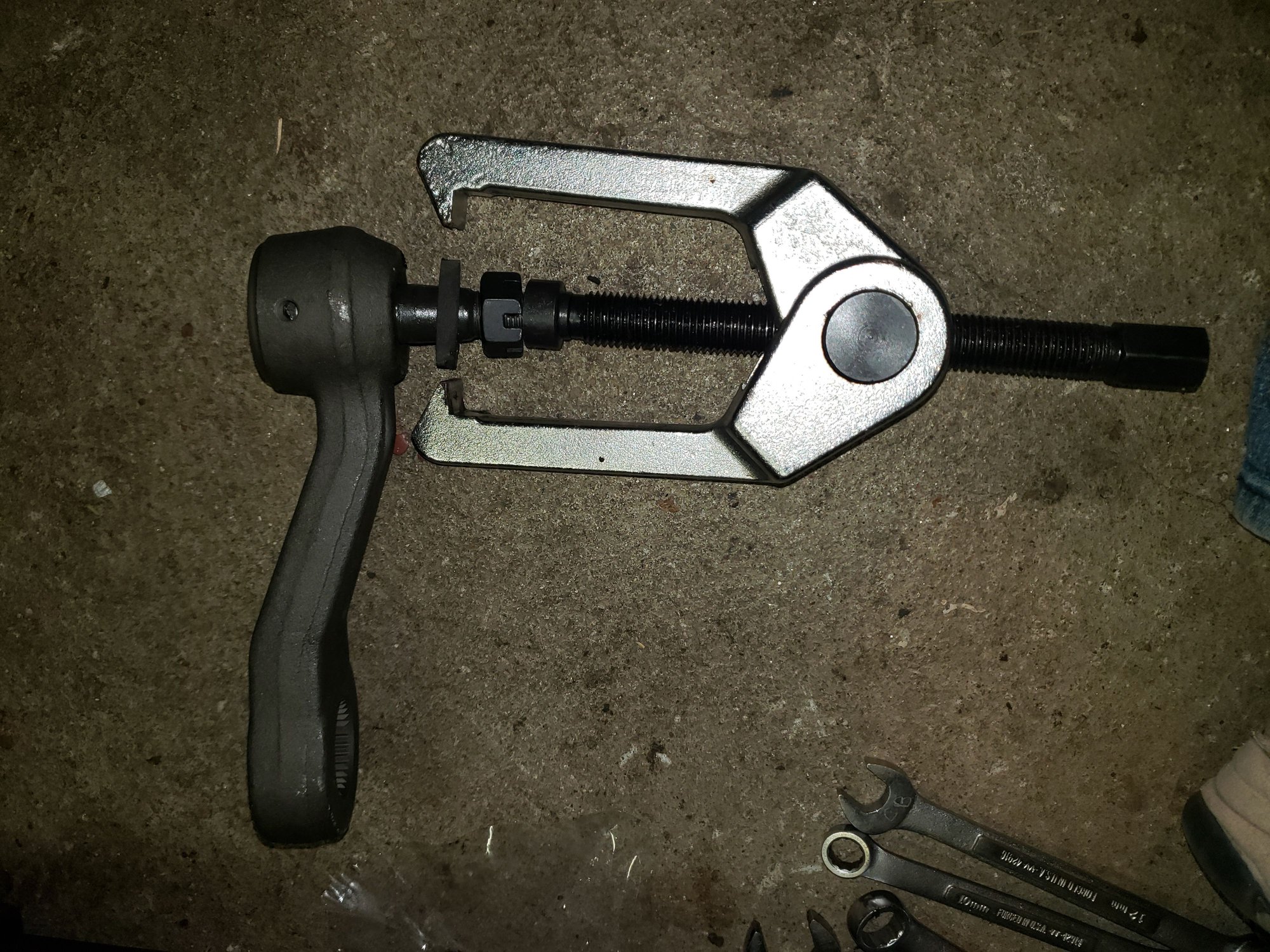 Oh Christine... when I installed the RC kit and pulled the front diff out I wanted to take out the center link for more space and of course, this required taking the pitman arm off the center link. I had everything else disconnected from the center link but that darn pitman arm. I spent most of a whole day I think trying everything to get it off, even broke my air hammer pitchfork right in half in the end. I used my air hammer with a pitchfork, every different pitch fork size I have, I tried. I tried a pickle fork then just wacking with a hammer. Sprayed religiously with wd and also tried heating it up with a torch. In the end, I gave up because I couldn't even get it to move the smallest bit after all I tried and pulled the diff with it still in. I'll be following this to see what ends up working for you, good luck!