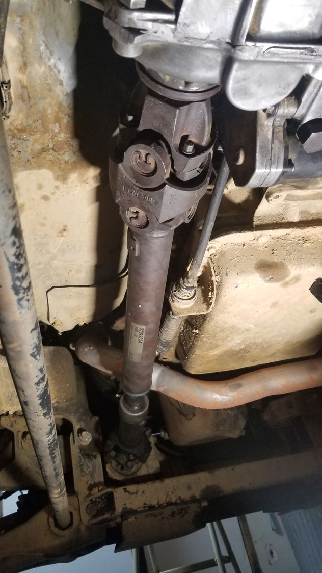 So, I've got the front out put and front driveshaft from a 98 Durango. It had a 231D HD case in it, with the wide chain. It already had a double cardon front driveshaft, I'm gonna see if a shop can get it to work in the Blazer.