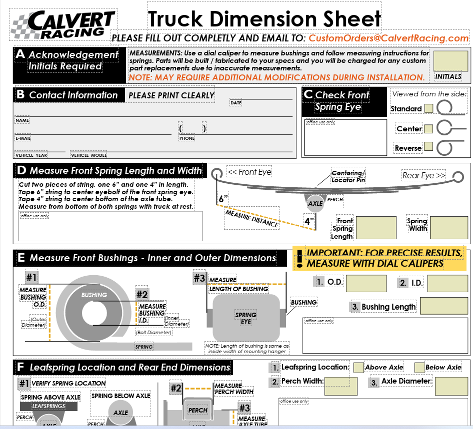 I’m also looking into running CalTracs traction bars, and since the truck is being lifted they told me the setup would need to be custom-built. They sent over a spec sheet with a bunch of precise measurements that need to be filled out.