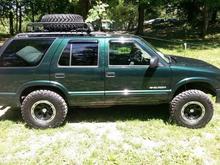 switched the standard cloth for powered leather seats, laser cut floormats, kenwood touchscreen double din, 15" kicker L5, yakima luggage rack, matching spare tire mounted on the rack, huge custom push bar(still needs powder coated and installed) with, recessed fog lights, dock bumpers, and a reese hitch for the portable winch